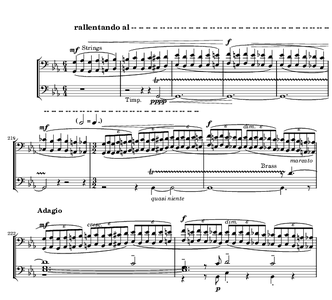 시벨리우스 교향곡 7번, 214–223마디(발췌)