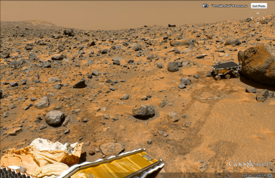 화성의 모습을 보여주는 기능이다. 웹 브라우저 버전도 있지만, 구글 어스 내의 구글 마스는 더 높은 해상도를 제공하며 3D 지형, 적외선 영상, 고도 데이터 등을 포함한다. 특히 화성 정찰 궤도선의 HiRISE 카메라로 촬영된 초고해상도 이미지는 지구의 도시 사진과 비슷한 수준의 상세함을 보여준다. 또한 화성 탐사 로버인 스피릿과 오퍼튜니티 등이 촬영한 고해상도 파노라마 이미지를 구글 스트리트 뷰와 유사한 방식으로 탐험할 수 있다. 화성 표면의 화성의 얼굴 근처에는 사용자와 상호작용할 수 있는 로봇 캐릭터 '멜리자(Meliza)'가 숨겨져 있기도 하다.[38]