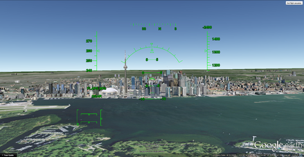 구글 어스 4.2 버전부터는 비행 시뮬레이션 기능이 추가되었다. 처음에는 숨겨진 기능이었으나 4.3 버전부터는 정식 메뉴로 포함되었다.[46][47] 사용자는 F-16 제트 전투기나 SR-22 경비행기를 선택하여 조종할 수 있으며[158], 조이스틱이나 키보드, 마우스로 조작이 가능하다.[158][46] 비행 시뮬레이터는 이륙, 비행, 착륙 과정을 체험할 수 있으며, 화면에는 속도, 고도, 비행 각도 등의 정보가 표시된다.
