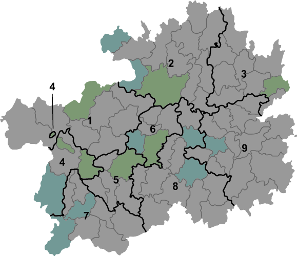 1994년 | 준이 특별구 런후아이 현, 현급 런후아이 시 설치, 비제 특별구 비제 현, 현급 비제 시 설치 (비제 특별구 행정 중심지) |