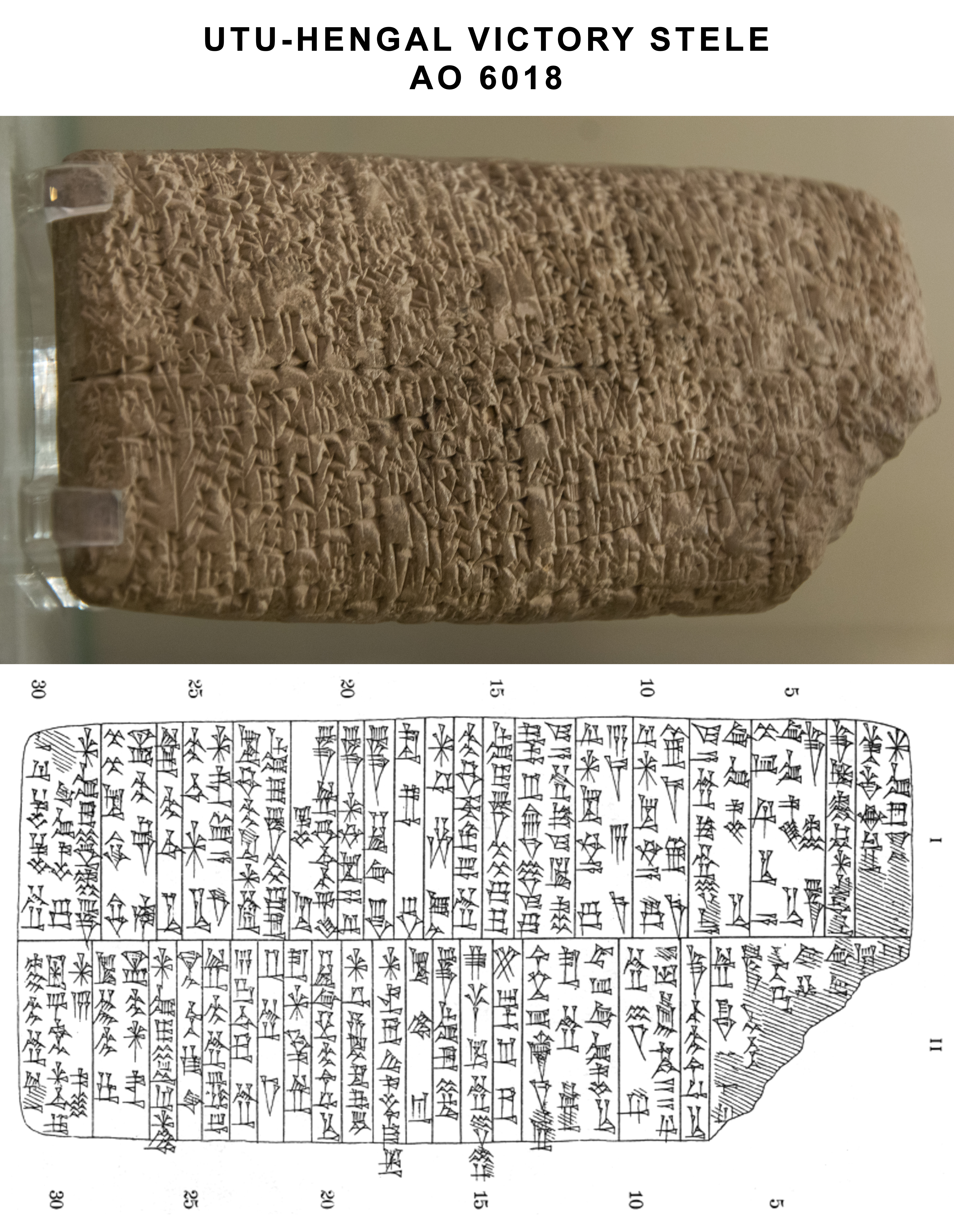 우투-헨갈 승전비 AO 6018 (전면 사진 및 필사본). 루브르 박물관