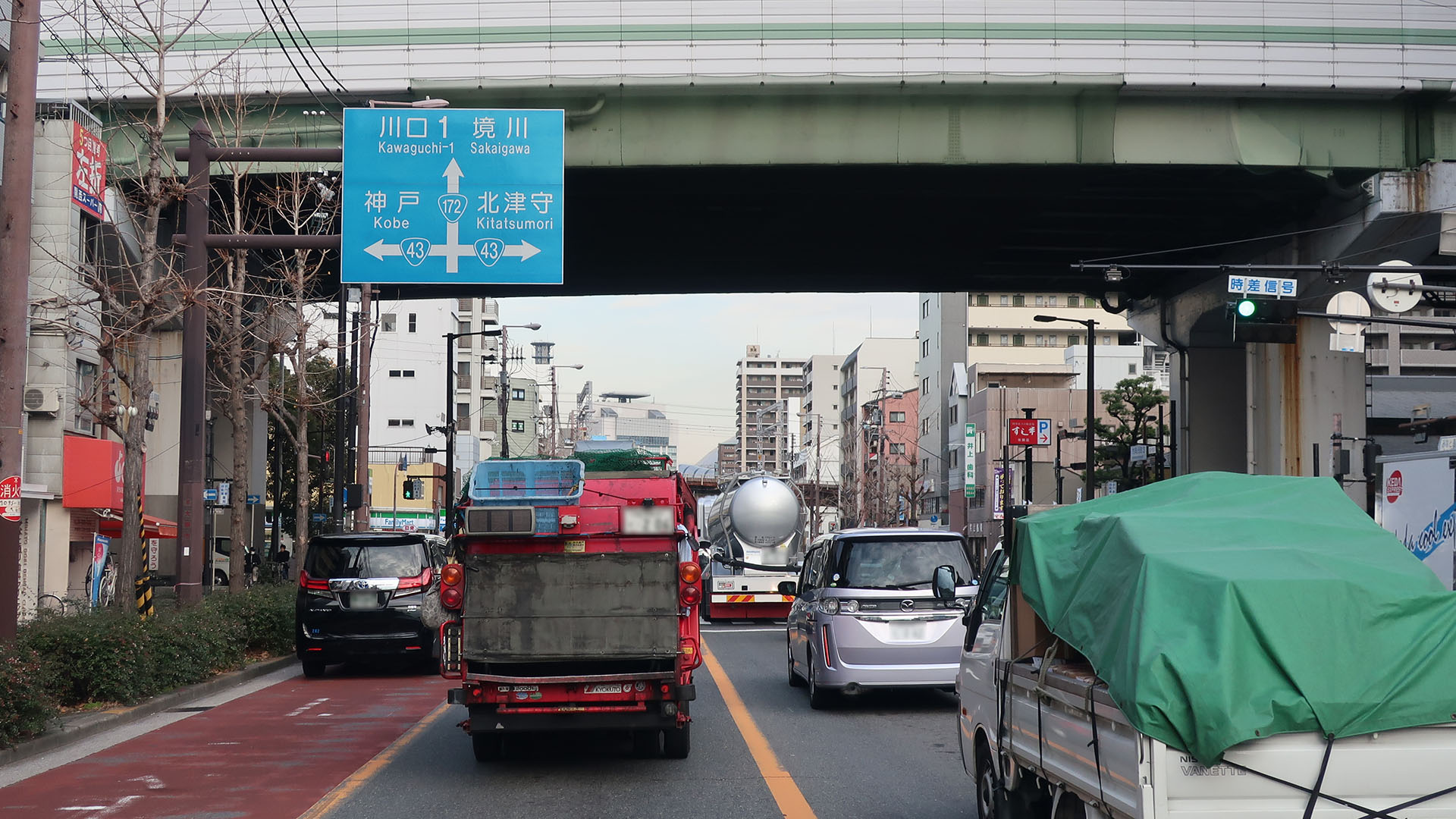 오사카시 미나토구 이치오카모토마치 3초메 교차로]]- 오사카시도 난바사카이가와선(大阪市道難波境川線)(오사카시 니시구・사카이가와 교차점)