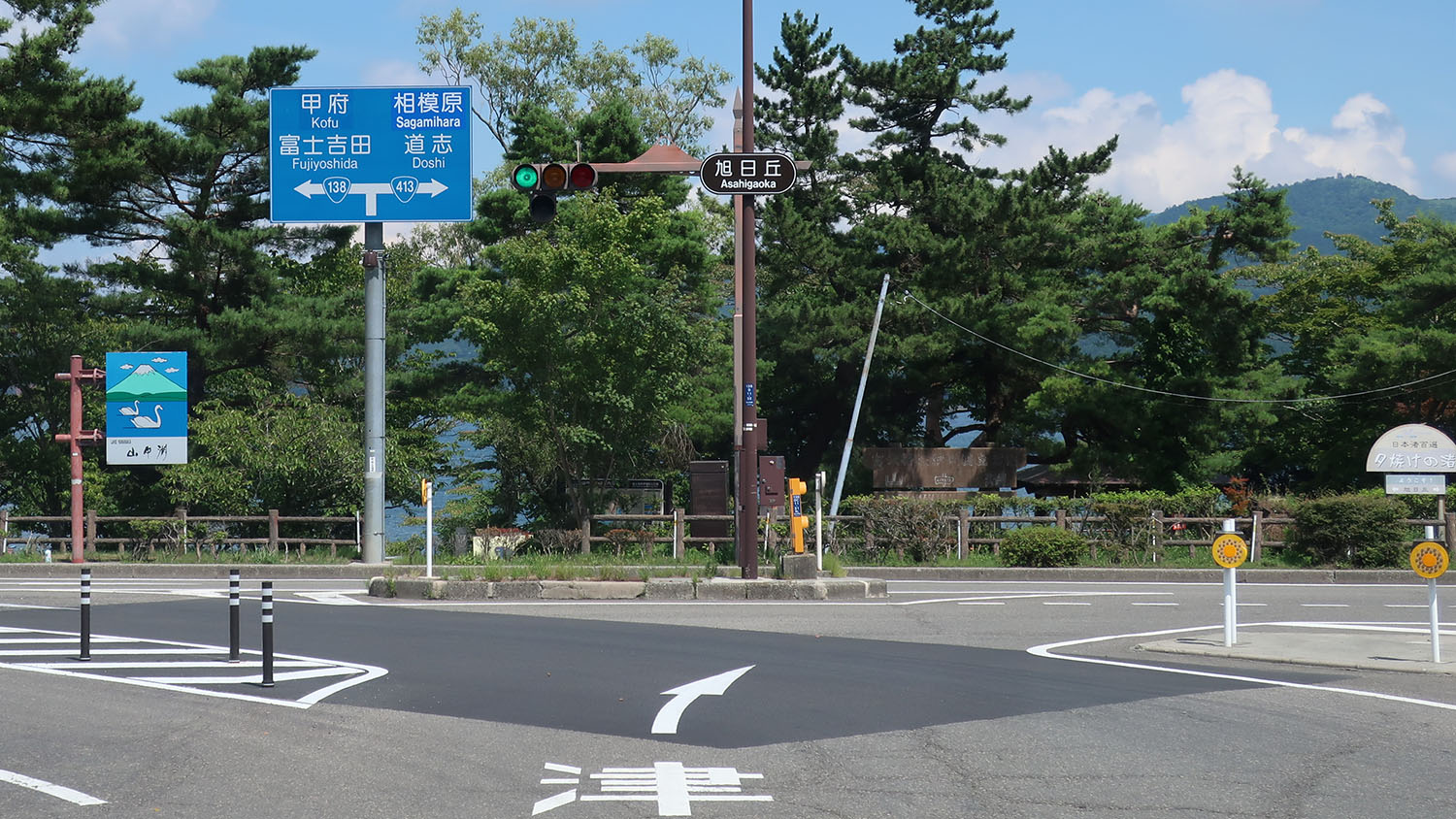 - 야마나시현 후지요시다시 - 야마나시현 미나미쓰루군 야마나카코촌 : 국도 제413호선[4][5]