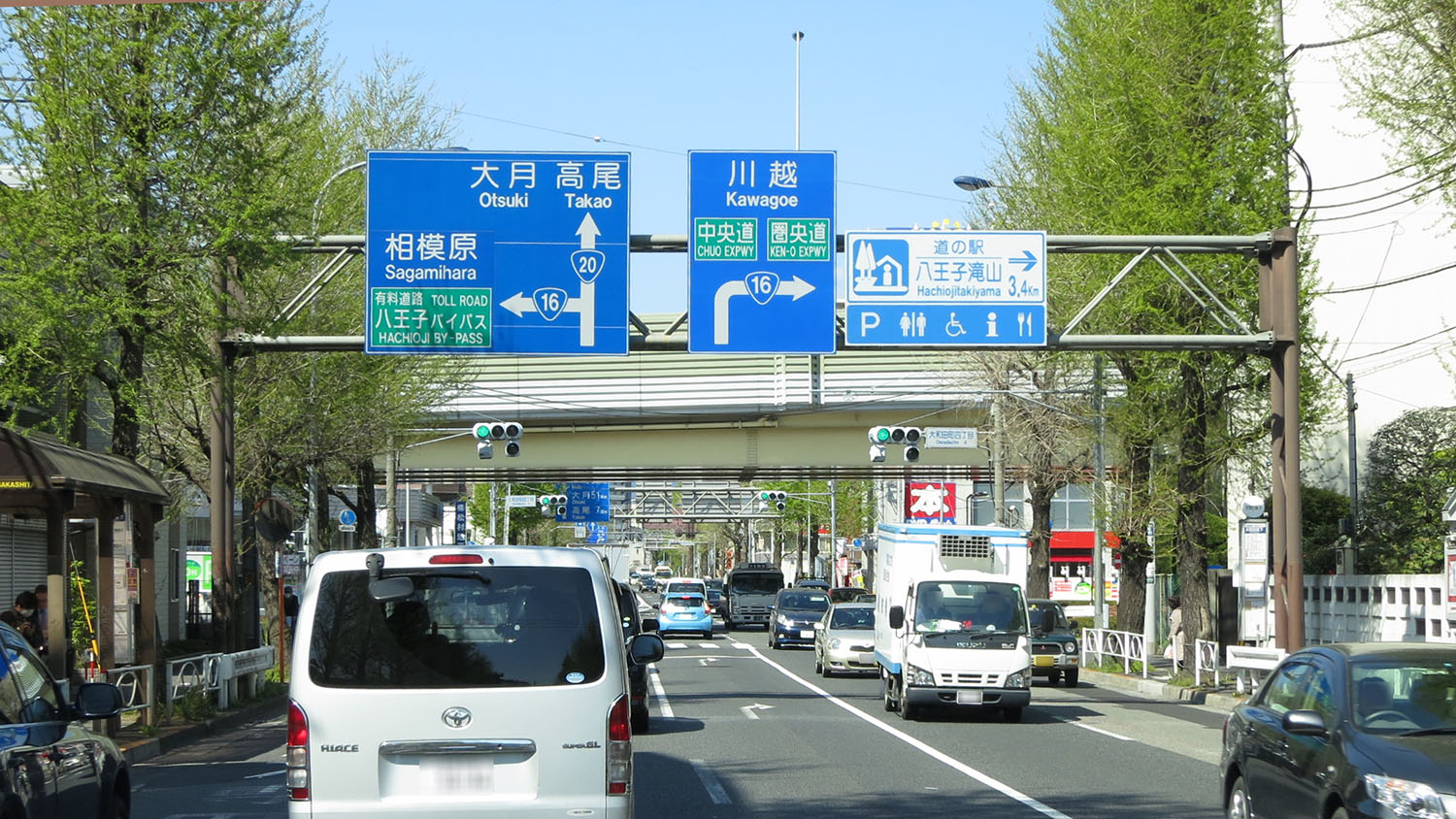 하치오지시 시가지 또한 도로변은 상점가로 이루어져 낮에는 혼잡하기 쉽다. 고타카역 앞에서 서쪽은 편도 1차선 도로가 되고, 게이오 고타카선을 지하도로 통과하여 고타카구치역을 지나 고메나와바시에 이르면 보도가 없어진다. 고메나와바시 부근에 다카오산 인터체인지가 있으며, 그 접근 도로인 하치오지 미나미 바이패스가 개통되어 있다.
