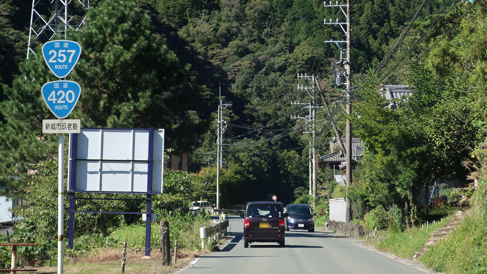 국도 420호선은 아이치현 도요타시에서 국도 153호선과의 중복 구간을 거쳐, 같은 시 아스케정에 있는 고란케이 부근을 통과한다. 고란케이 입구에 해당하는, 기점으로부터 약 18km 떨어진 아스케 오하시 니시 교차점에서 약 15km 구간은 완전 단독 노선 구간이지만, 같은 시 아쿠라정부터 약 15km는 국도 473호선과 중복된다.[2] 또한 기타시타라군시타라정 타미네의 국도 257호선 교차점부터 약 19km는, 이 노선과 중복 구간이 되어 종점인 신시로시에 이른다.