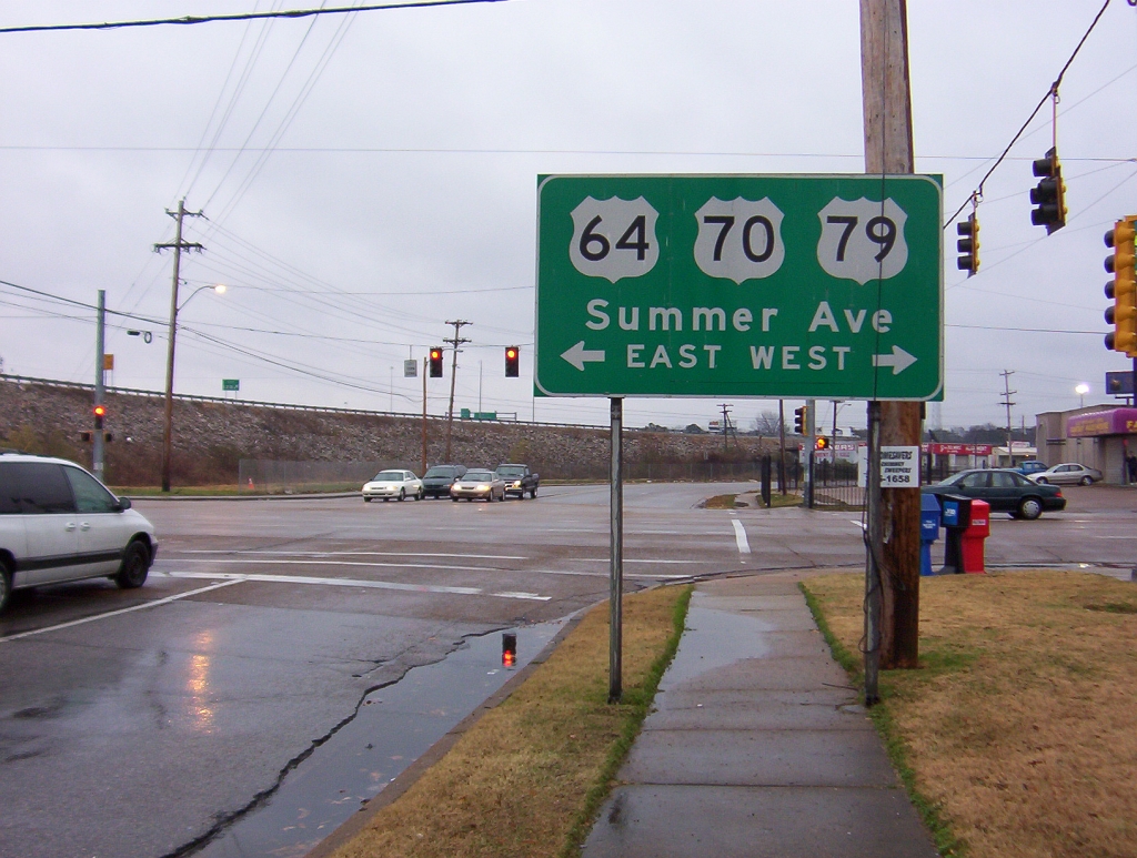 US 70은 테네시주 멤피스에서 주간고속도로 55호선(Interstate 55), US 61, US 64, US 79와 함께 시작한다. 멤피스 시내를 통과하면서 US 64, 70, 79는 대니 토마스 대로를 따라 북쪽으로, 유니언 애비뉴를 따라 동쪽으로, 이스트 파크웨이를 따라 북쪽으로 이동한 후 서머 애비뉴에서 동쪽으로 방향을 튼다. 시 경계 근처에서 이 세 도로는 주간고속도로 40호선(Interstate 40)과 교차한다.[15]