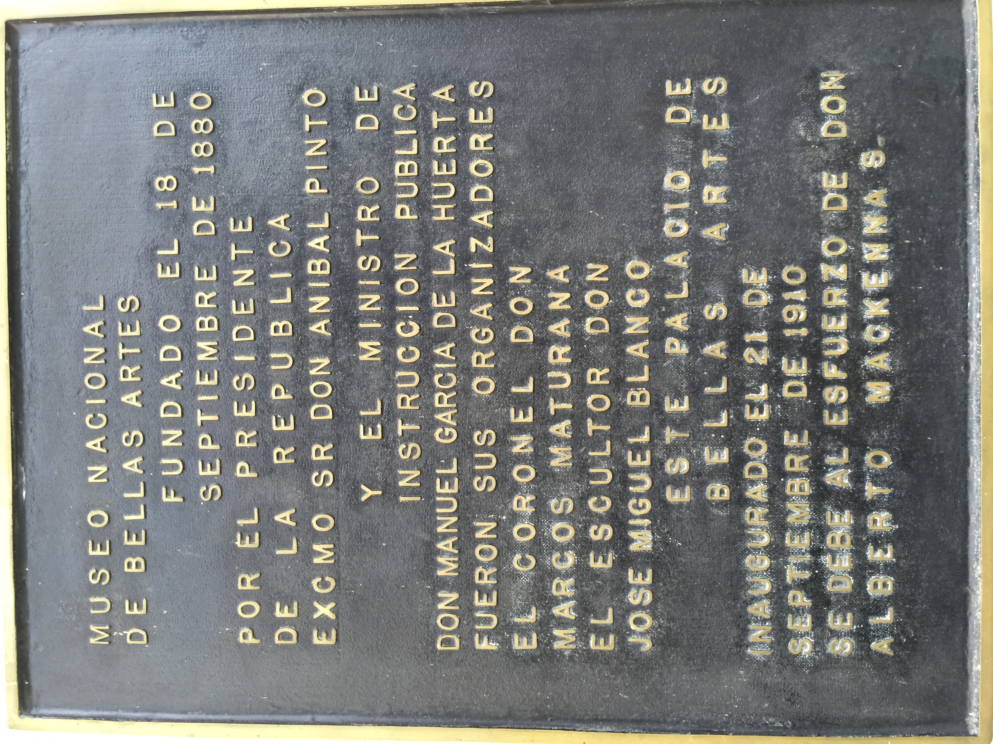 칠레 대통령 돈 아니발 핀토, 마누엘 가르시아 데 라 우에르타 장관, 마르코스 세군도 마투라나와 조각가 호세 미겔 블랑코가 함께 미술관 설립을 주도했으며, 초대 관장은 화가 후안 모치였다.[1]