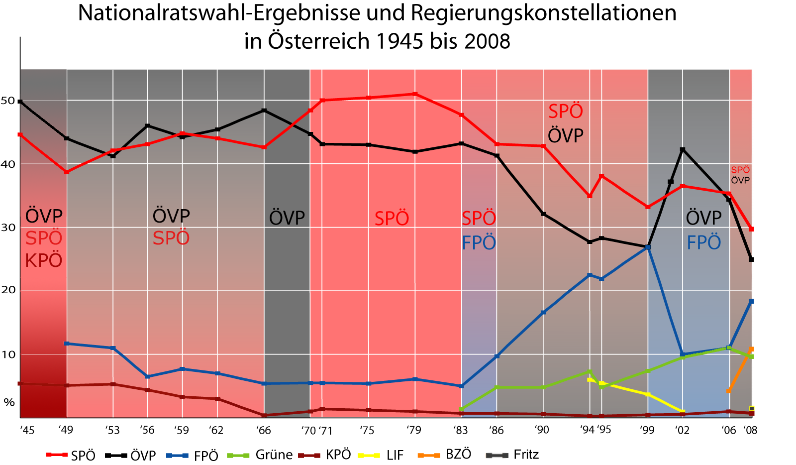 2024년 오스트리아 총선에서 극우 성향의 오스트리아 자유당(FPÖ)이 57석을 확보하여 제1당이 되었다. 중도 우파 성향의 오스트리아 국민당(ÖVP)은 51석으로 제2당, 중도 좌파 성향의 오스트리아 사회민주당(SPÖ)은 41석으로 제3당을 차지했다. 녹색당(GRÜNE)은 16석, NEOS(신오스트리아와 자유포럼)는 18석을 얻었다.