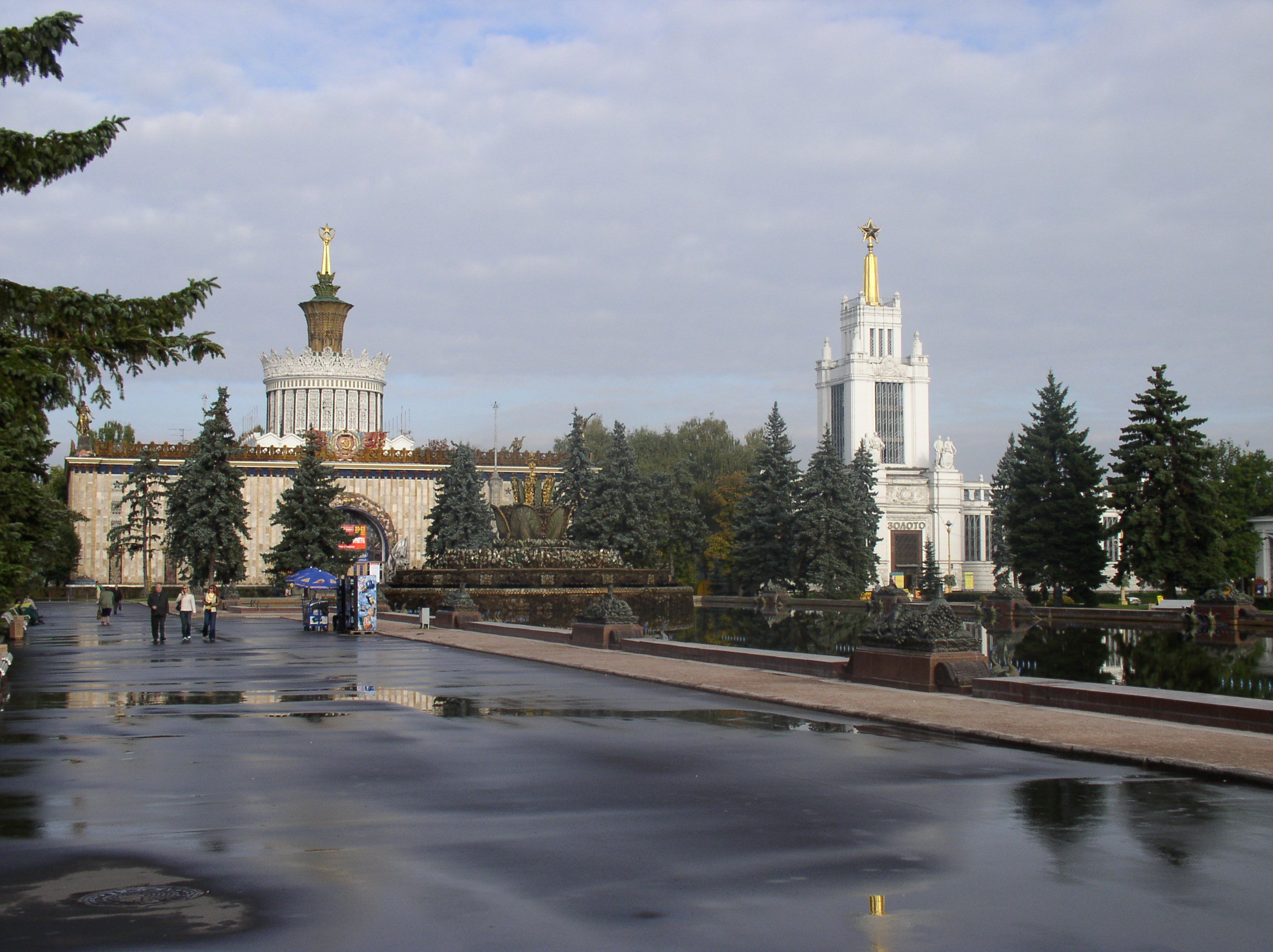 우크라이나 파빌리온(왼쪽)과 스타린 양식의 황금관(구 농업관)
