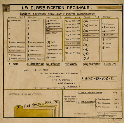 1920년 프랑스어로 된 국제 십진 분류법 색인 구성에 대한 설명 도표