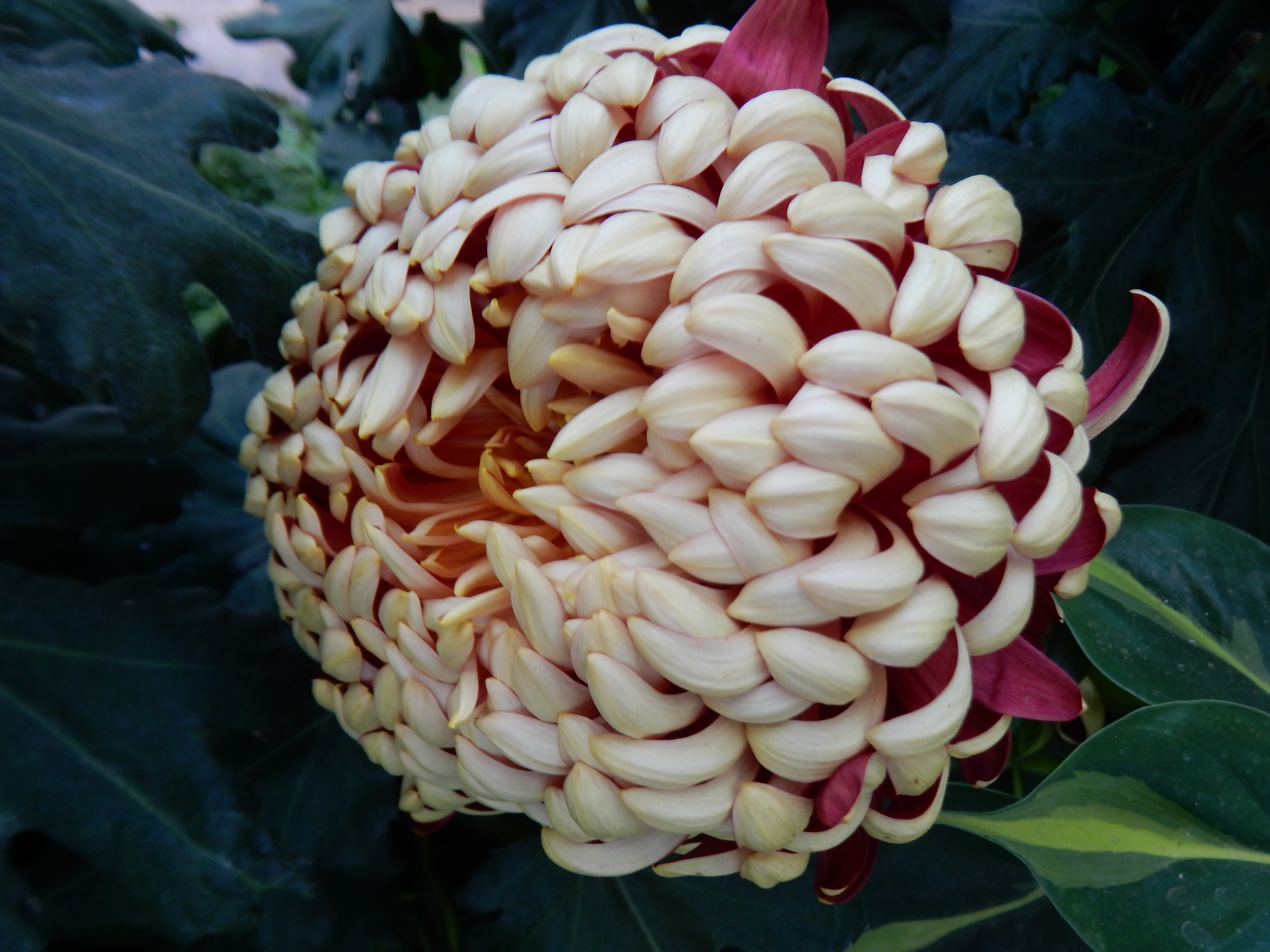 대국(大菊)은 꽃의 지름이 20cm 전후인 국화를 말한다. 한 가지에 한 송이만 남기고 주변의 꽃봉오리를 따서 가꾼다. "세 줄기 심기", "달마 만들기", "복조 만들기" 등의 방법으로 재배한다.[29] 대국은 두꺼운 꽃잎, 두꺼운 겹꽃잎, 큰 겹꽃잎, 관 모양 꽃잎, 넓은 꽃잎 등으로 나뉜다.3. 1. 1. 두꺼운 꽃잎 (厚物)