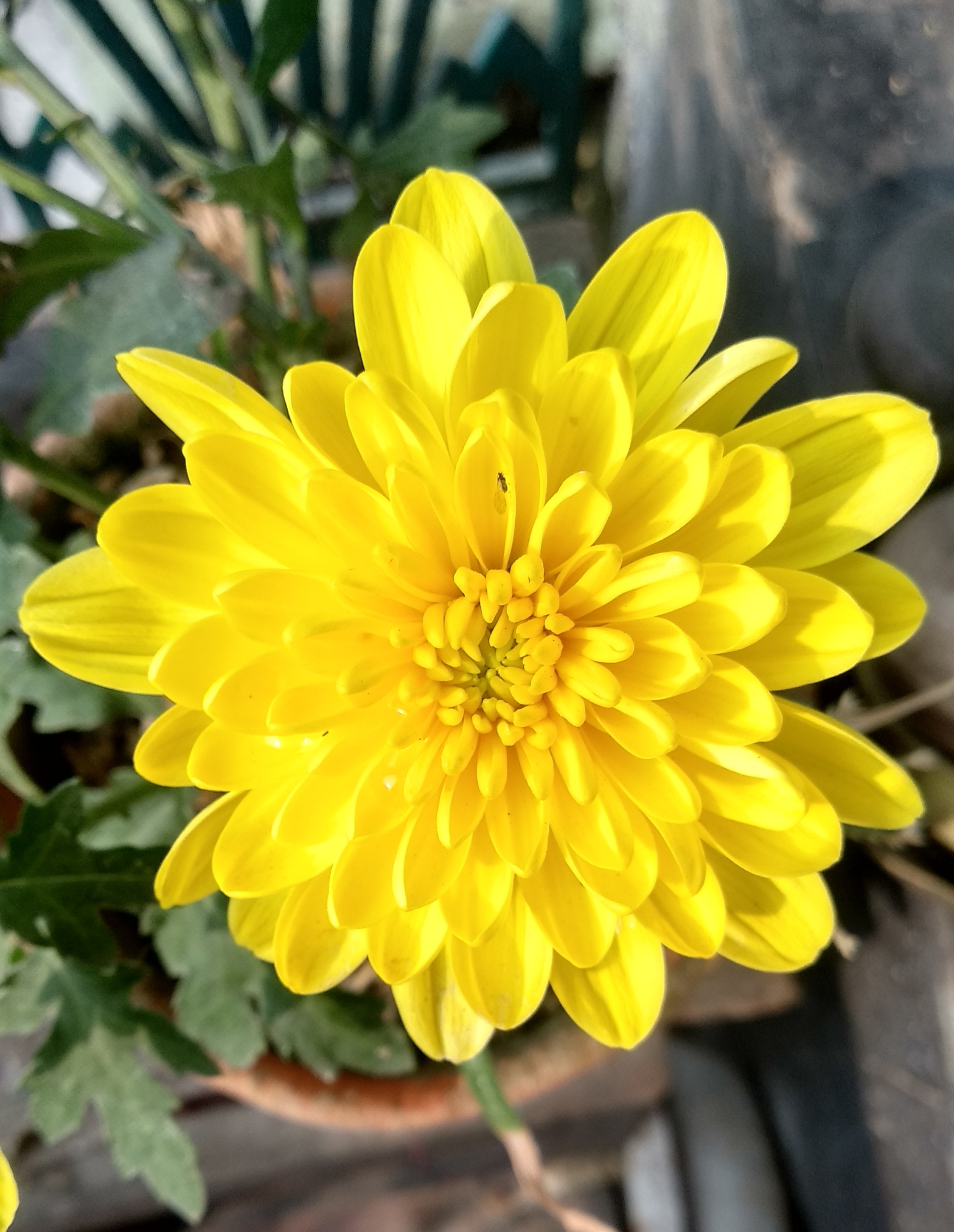 복합 총 화서에는 여러 개의 컵 모양의 부분 화서가 함께 있다. 설상화는 다양한 품종에서 녹색, 흰색 또는 노란색, 분홍색에서 보라색까지 다양한 색상을 가질 수 있다. 데이지처럼 생긴 단순한 꽃을 가진 품종과 크고 작은 폼폼처럼 생긴 겹꽃을 가진 품종이 있다. 이 식물은 하루 길이가 14시간 미만일 때 개화하기 시작한다.