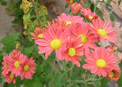 - '''스프레이 국화''': 꽃의 지름이 6cm에서 3cm 정도이며, 작은 가지 끝에 여러 개의 꽃이 핀다.