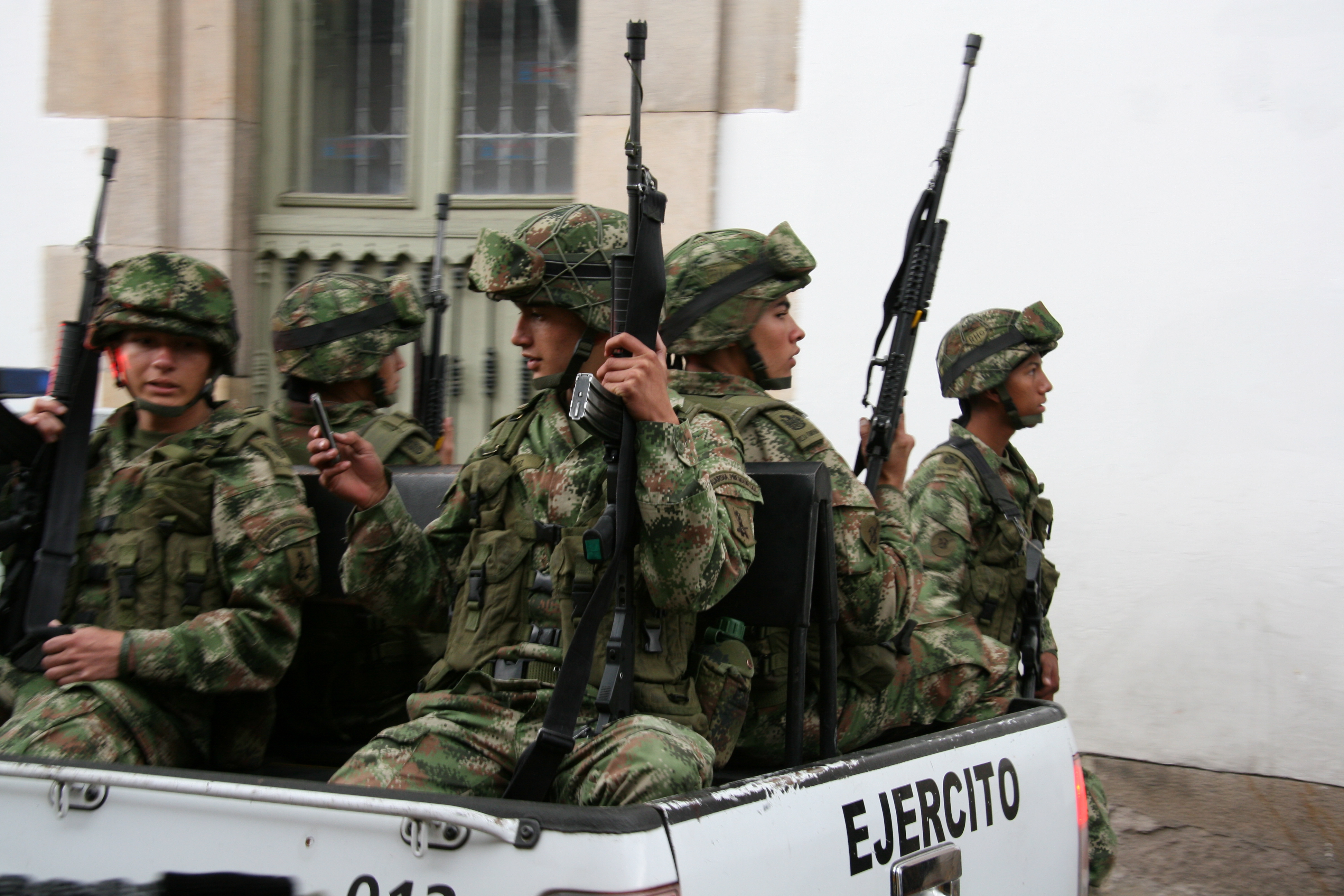 콜롬비아에서는 군사경찰(Policía Militares)이 매우 흔하며, 폐쇄된 도로, 박물관, 대사관, 정부 건물, 공항 등에서 경비하는 모습을 볼 수 있다. 콜롬비아 국군에서는 37개의 군사경찰 대대에 배속되어 있으며, 군사경찰 헬멧을 착용하고 녹색 군복을 입고 있다. 해군경찰 대대는 콜롬비아 해병대에서 복무하고 있다. 군사경찰 부대는 의식 행사를 위해 군악대와 취타대를 제공하기도 한다. 공군에도 군사경찰(Policía Militar Aérea)이 있으며, 콜롬비아 공군 기지 내의 경비 및 법 집행을 담당한다.