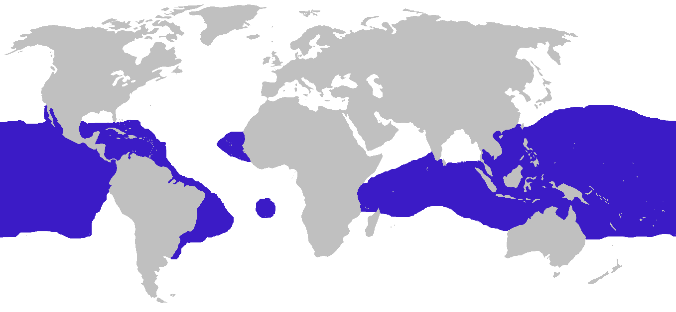 세계의 열대・아열대에 널리 분포하며, 주요 분포 지역은 태평양과 인도양, 그리고 카리브해이며, 대서양에서의 분포 지역은 제한적이다.