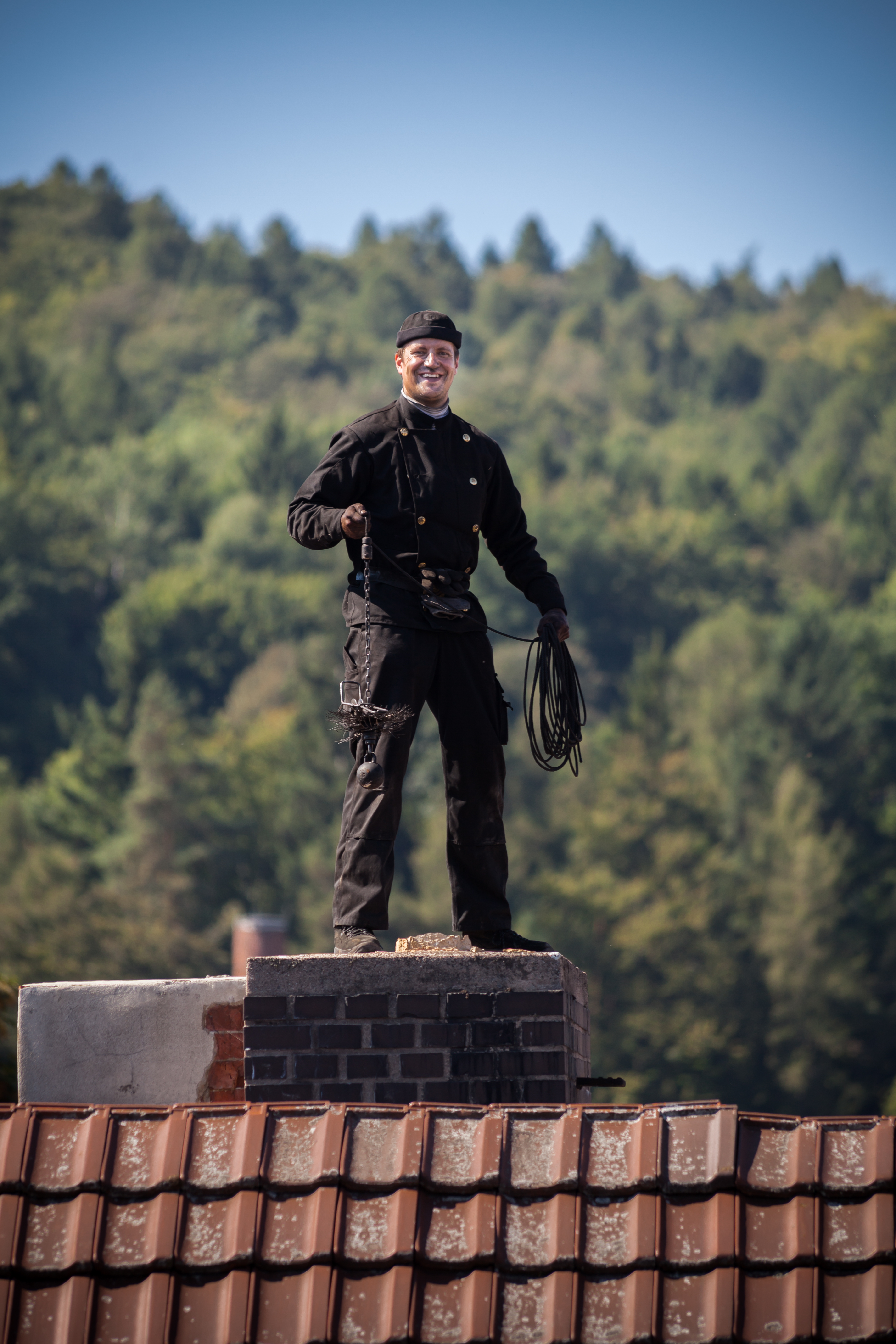 현대 굴뚝 청소 | 현대에는 전문 장비를 사용하여 굴뚝을 청소함. |
