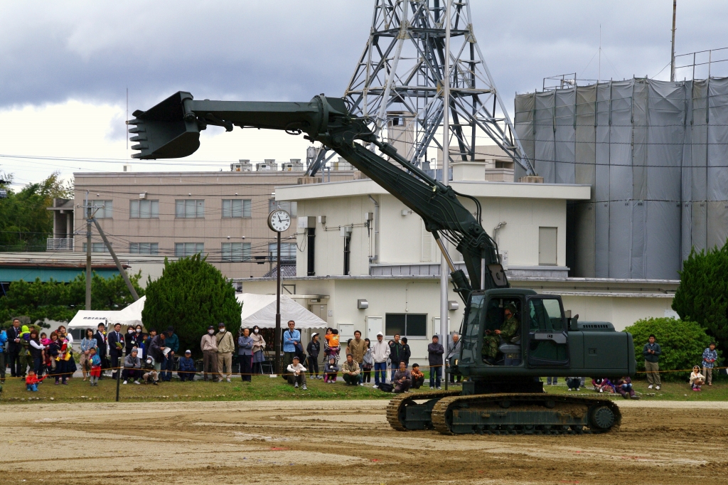 굴착기는 보통 백호로 사용되지만, 전방 로딩 버킷, 압쇄기, 철골 절단기 등을 장착하여 건물 해체, 콘크리트 파쇄 등에도 활용된다.[13]