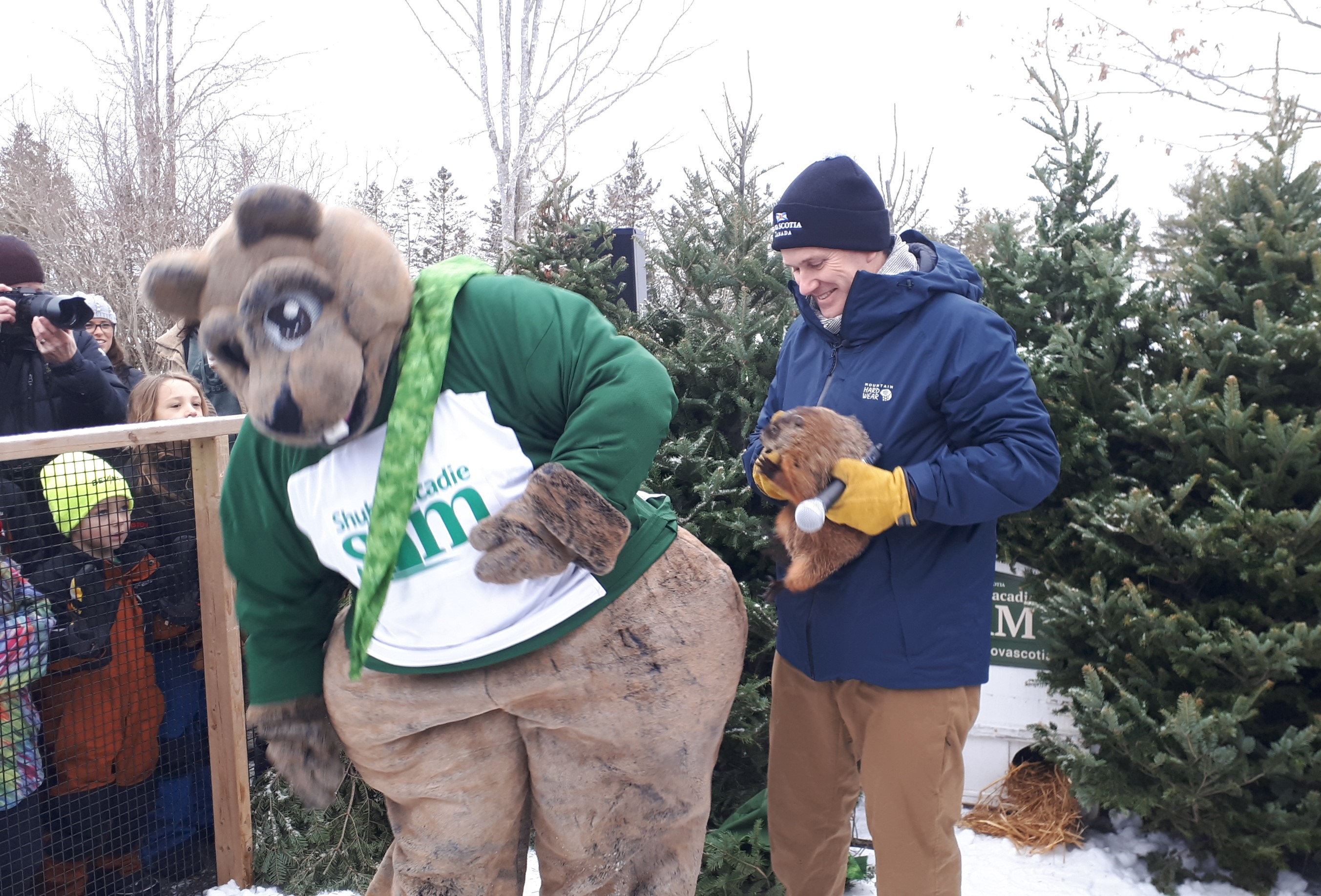 노바스코샤에서는 1750년대 독일 외국 개신교도 이민자들이 "닥스 데이"(Daks Day, 독일어 방언으로 "오소리"를 뜻하는 ''dachs''에서 유래)라는 이름으로 루넨버그 정착지에 그라운드호그 데이 전통을 가져왔다.[1][78][79] 노바스코샤의 대서양 시간대 때문에 이 주의 공식적인 그라운드호그인 슈벤아카디 샘은 북미에서 가장 먼저 그라운드호그 데이 예측을 발표한다. 이 전통은 1987년부터 노바스코샤의 슈벤아카디 야생 공원에서 시작되었다.[80] 이 주의 방언으로 그라운드호그 데이는 닥스 데이라고 불린다.[131]