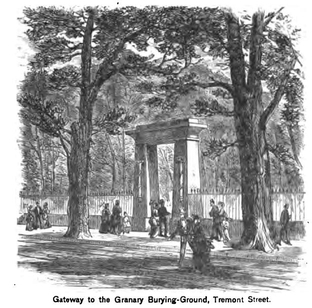 트리몬트 가 입구 근처에는 1770년 3월 5일에 발생한 보스턴 학살 희생자들의 묘비가 있다.[10] 이 묘비들은 19세기에 묘지 정비 및 관리를 위해 재배치되었다.
