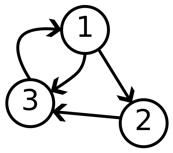 레이블이 지정된 그래프 인접 행렬 외차수 행렬 외차수 라플라스 행렬 내차수 행렬 내차수 라플라스 행렬 3개의 꼭짓점을 가진 방향 그래프 \left(\begin{array}{rrr} \left(\begin{array}{rrr} \left(\begin{array}{rrr} \left(\begin{array}{rrr} \left(\begin{array}{rrr}