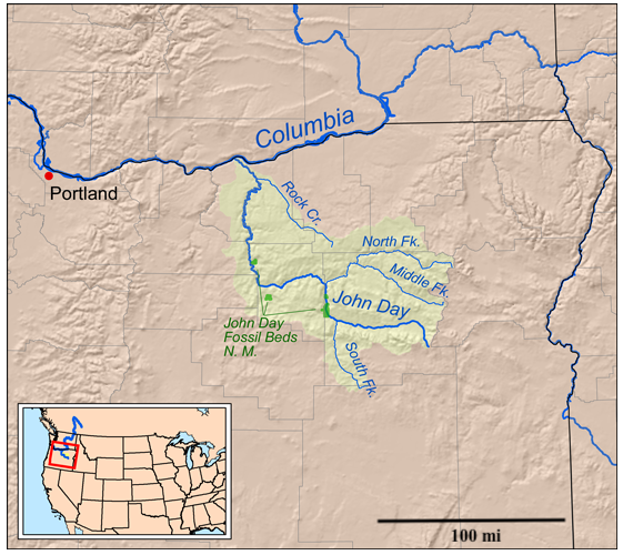 그랜트군은 존 데이 화석 유적을 포함하며, 금, 은, 백금족 원소, 크롬, 구리 및 코발트와 같은 귀금속이 발견된다. 존 데이 화석 유적에서는 고사리, 아열대 및 온대 낙엽 활엽수림, 조개류, 검치 호랑이, 멸종된 말과 낙타 종, 거대한 나무늘보의 잔해가 발견된다.