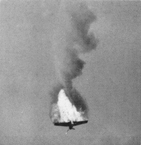 F6F-5K 헬캣 표적 드론이 1954년 중순양함 USS ''Saint Paul''에 의해 격추되는 모습.