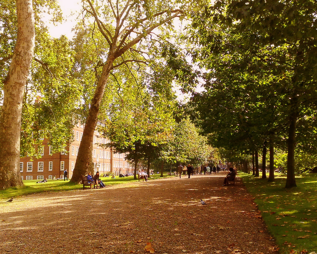 1590년대 프랜시스 베이컨이 설계한 것으로 알려진 "The Walks"라고 불리는 정원은 중앙에 길이 있고 양 옆에 플라타너스 나무가 심어져 있다. 이 정원은 과거 결투의 무대였으나, 17세기 무렵에는 신사 숙녀들의 만남의 장소가 되었다. 새뮤얼 페피스는 1661년 일기에 "저녁 식사 후 어린 하인을 데리고 그레이 법학원의 "The Walks"를 처음 걸었다. 거기에는 많은 멋을 낸 남자들이 있었다. 거기서 나는 처음 보았다. Francis Butler 부인을. 그녀는 이 공원의 어떤 부인보다도 가장 아름다웠다."라고 적고 있다.