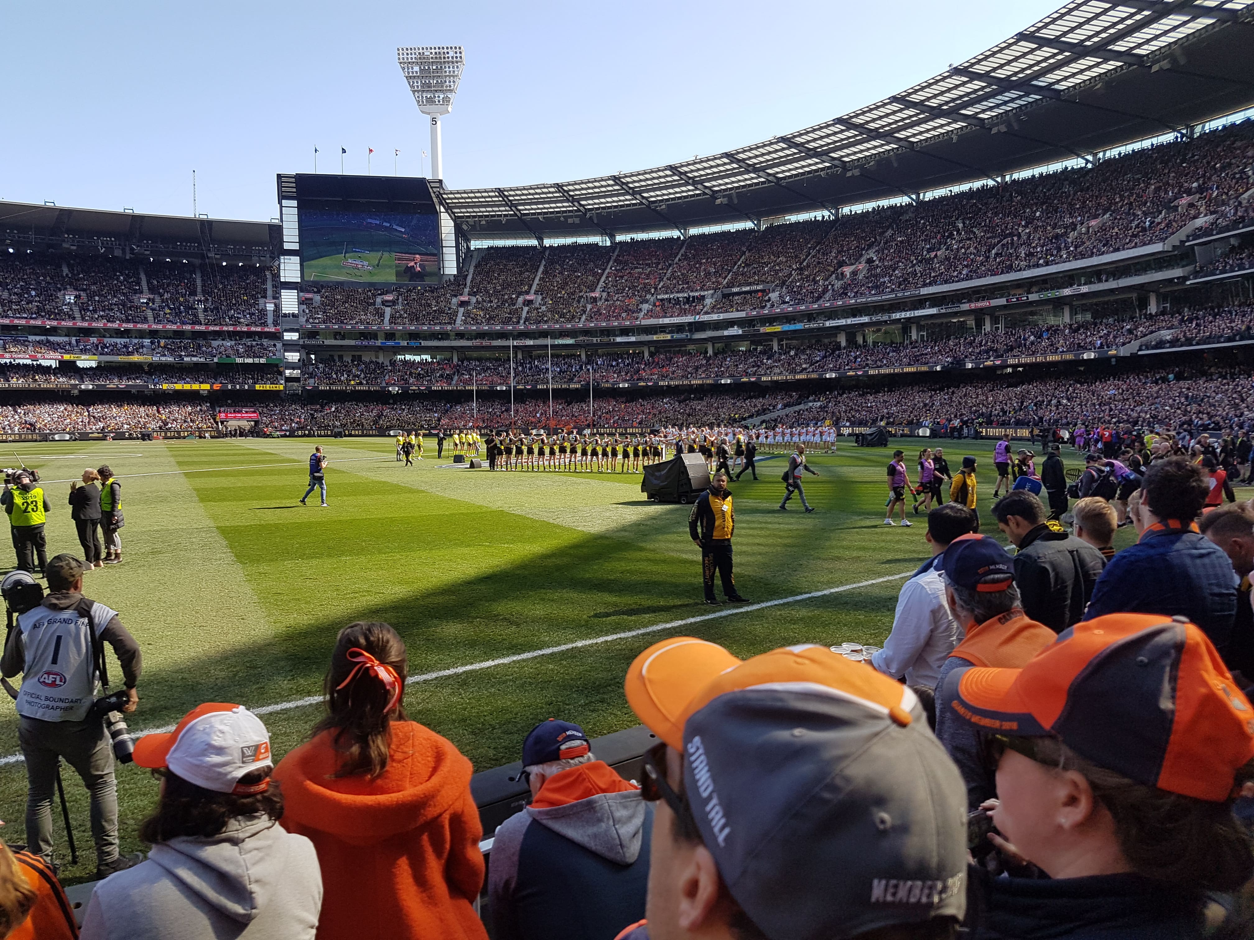 자이언츠는 특히 호손 풋볼 클럽 및 웨스턴 불독스와의 21라운드와 22라운드에서 각각 매우 부진한 경기력을 보인 후 2019 AFL 플레이오프 시리즈에 진출하여, 일부에서는 플레이오프에서 조기 탈락할 것으로 예상되었다.[74][75] 그러나 그들은 예상을 뒤엎고 결국 처음으로 AFL 그랜드 파이널에 진출했다. 자이언츠는 3주 전에 홈 구장에서 굴욕을 안겨준 불독스를 58점 차로 꺾고 두 번째 탈락 플레이오프에서 승리했다.[76] 그 후, 그들은 더 가바에서 열린 명승부 준결승에서 브리즈번 라이언스를 3점 차로 꺾고[77], 동등하게 흥미진진한 예선 결승에서 콜링우드 풋볼 클럽을 4점 차로 꺾었다.[78] 그렇게 함으로써, 자이언츠는 2000 AFL 시즌에 AFL 파이널 8 시스템이 도입된 이후 2016년 디사이더에서 7위로 진출한 불독스(결국 그 해 프리미어십에서 우승) 이후 상위 4위 안에 들지 않고 그랜드 파이널에 진출한 두 번째 팀이 되었다.