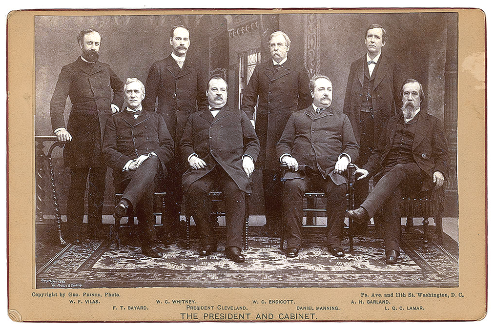 앞줄, 왼쪽부터: 토머스 F. 바야드, '''클리블랜드''', 다니엘 매닝, 루시우스 Q. C. 라마르