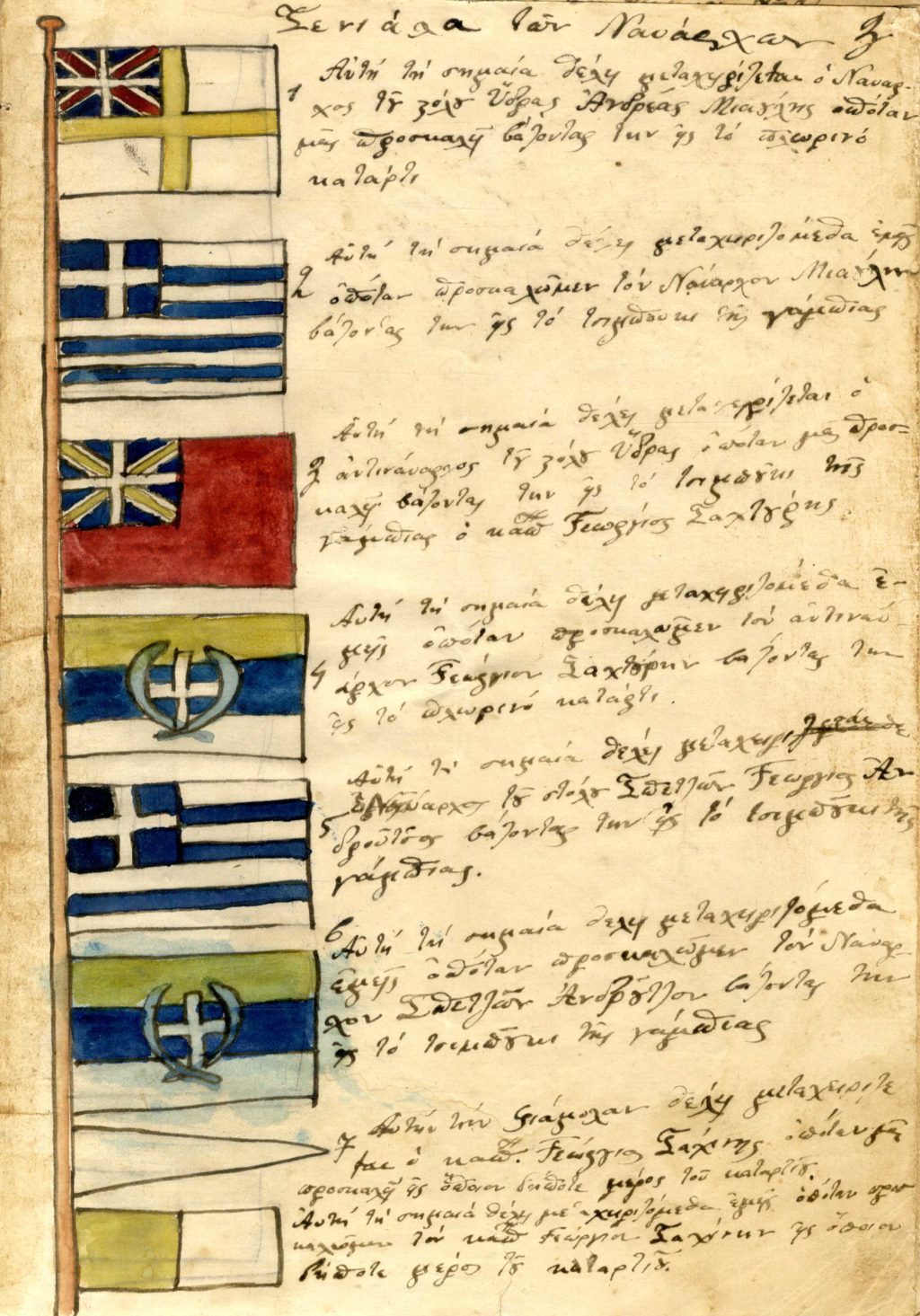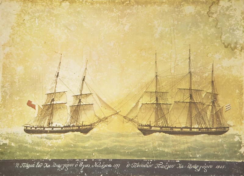 |200px|thumb|스페체스 출신의 아나르기로스 형제의 소유인 ''아기오스 니콜라오스''(1797)와 ''포세이돈''(1815)은 러시아 국기의 변형된 깃발을 게양했다.]]