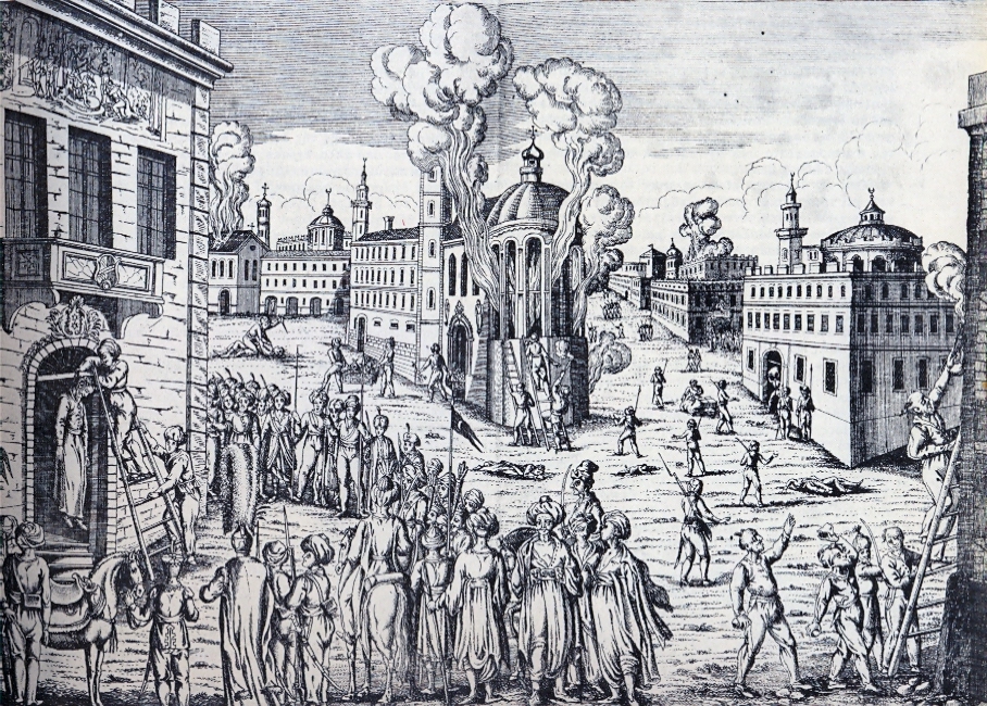전쟁 발발은 오스만 제국 전역에서 대량 학살, 포그롬식 공격, 교회 파괴, 그리스 재산 약탈로 이어졌다. 가장 심각한 잔혹 행위는 콘스탄티노플에서 발생했는데, 이는 1821년 콘스탄티노플 대학살(Constantinople Massacre of 1821)로 알려지게 되었다. 반란에 반대했음에도 불구하고 술탄의 명령으로 1821년 4월 22일 콘스탄티노플 총대주교 그레고리우스 5세(Patriarch Gregory V of Constantinople)가 처형되었는데, 이는 유럽 전역에 분노를 일으켰고 그리스 반군에 대한 지원을 증가시켰다.[65]