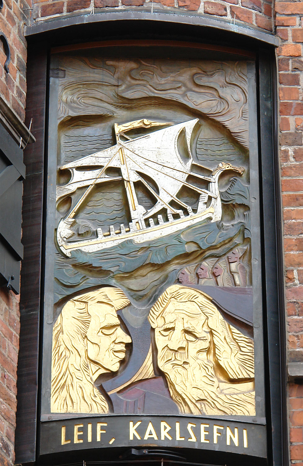 레이프 에릭손은 비아르니의 발견에 관심을 갖고 그에게서 배를 산다. 35명의 선원을 고용한 레이프는 아버지 에이리크에게 탐험대 지휘를 요청하지만, 에이리크는 늙었다는 이유로 거절한다. 하지만 결국 설득당한 에이리크는 배로 향하던 중 말이 걸려 넘어지면서 발을 다치고, 이를 불길한 징조로 여겨 탐험대 지휘를 포기한다. 결국 레이프가 탐험대를 이끌게 된다.[4]