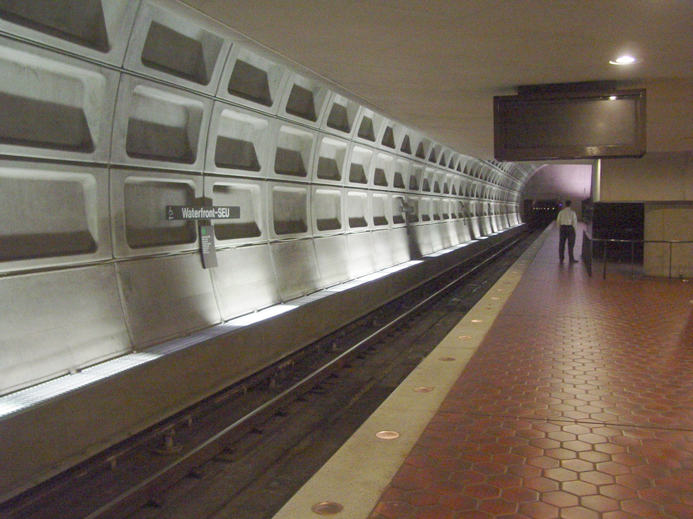 갤러리 플레이스 역과 워터프론트 역 사이의 터널은 미래의 옐로우 라인과의 연결 지점을 포함하여 1970년대 초 워싱턴 도심의 다른 메트로 터널과 동시에 건설되었다. 개착식 기법이 사용된 7번가와 U 스트리트에서 건설하는 동안 이 거리의 교통과 보행자 접근이 어려웠다.[18]
