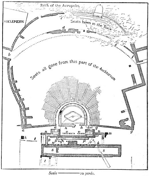 ![]() Dorpfeld와 Reisch의 Das griechische Theater (아테네, 1896)에서 발췌, 1911년판 브리태니커 백과사전의 "극장"에 관한 기사에 제시됨. | |