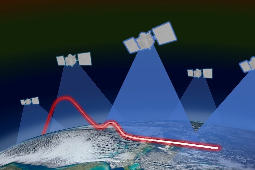 NDSA의 위성은 지구 궤도를 도는 군집으로 배치될 예정이며, 위성 군집의 시야를 나타내는 파란색 원뿔로 표시된 것처럼 지구를 끊임없이 관측한다. 위성들은 상호 통신하여 적의 극초음속 비행체에 대항하는 방어 시스템을 지원하고, 이에 대한 킬 체인을 구축한다.