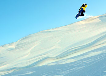 스노보드는 보드를 타고 슬로프를 내려오면서 다양한 기술을 구사하는 겨울 스포츠이다.[36]