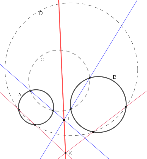 설명 | 두 원에 대해 각 원과의 접선 길이가 같은 점들의 자취이다. |
