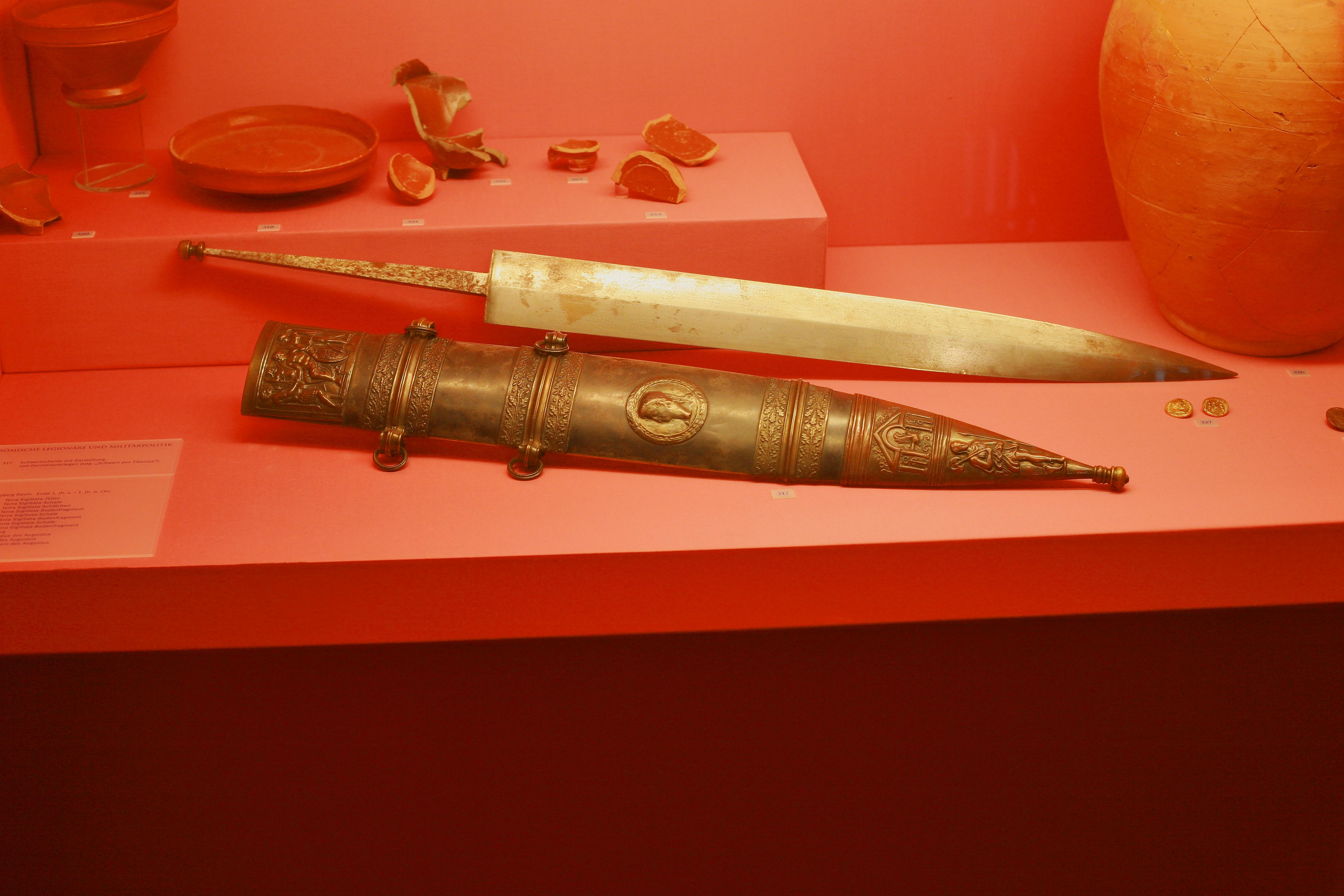 고대 로마 병사들이 사용한 글라디우스는 히스파니아(Hispania) 기원의 검으로, 도입 당시에는 "히스파니아 검(gladius hispaniensis)"이라고 불렸다. 스키피오 아프리카누스가 제2차 포에니 전쟁 중 히스파니아 원정을 갔을 때 도입한 것이 시작이라고 여겨진다. 그 이전의 로마 군단에서는 길고 가는 검을 사용했다.