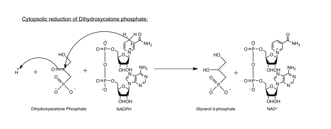 세포질 글리세롤 3-인산 탈수소효소(GPD1)는 다이하이드록시아세톤 인산을 글리세롤 3-인산으로 환원시키는 NAD+ 의존성 효소이다.[24] 이와 동시에 NADH는 NAD+로 산화된다. 이러한 과정을 통해 추가적인 대사를 위해 NAD+가 재생성된다.