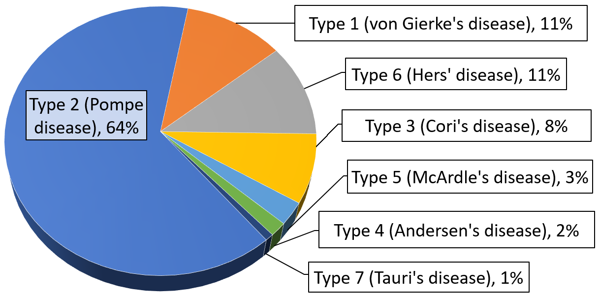글리코젠 축적병은 효소 결핍의 종류에 따라 다양한 유형으로 나뉘며, 각 유형별 특징은 아래 표와 같다.