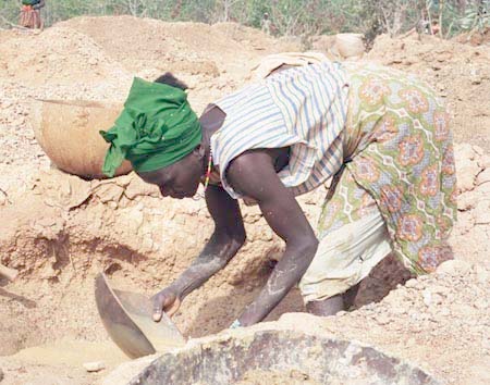 광부들은 정부의 박해, 광산 갱도 붕괴, 수은과 같은 가공 과정에서 사용되는 안전하지 않은 화학 물질에 의한 중독 위험에 처해 있다. 예를 들어, 2009년 가나에서는 돔포아세 광산 붕괴 사고로 18명의 노동자가 사망했는데, 이는 가나 역사상 최악의 광산 재해였다.[65]