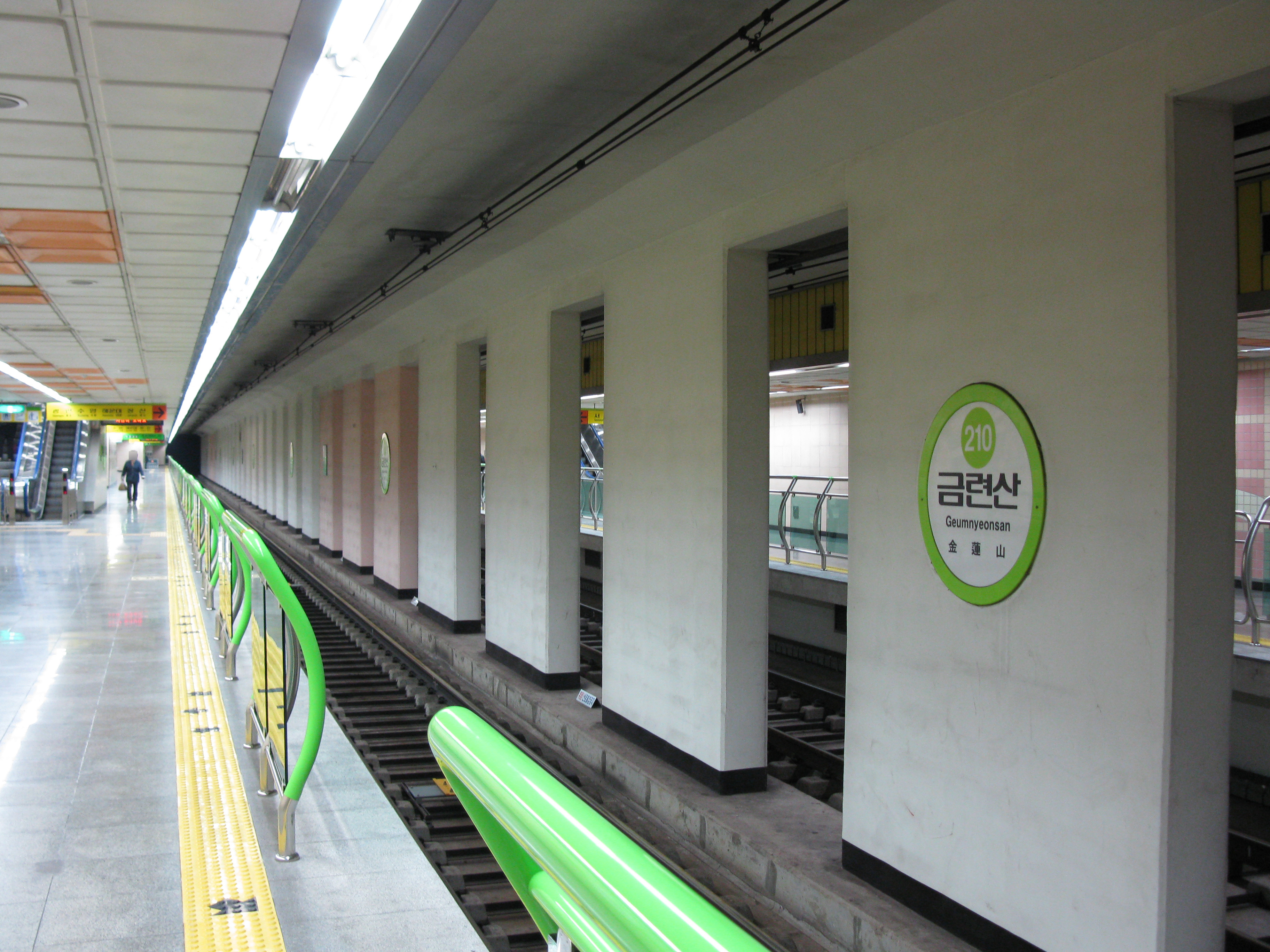 금련산역은 2면 2선의 상대식 승강장을 갖춘 지하역이며, 전면형 스크린도어가 설치되어 있어 안전하고 쾌적하다. 반대편 횡단이 가능하며, 출입구는 6곳이다.