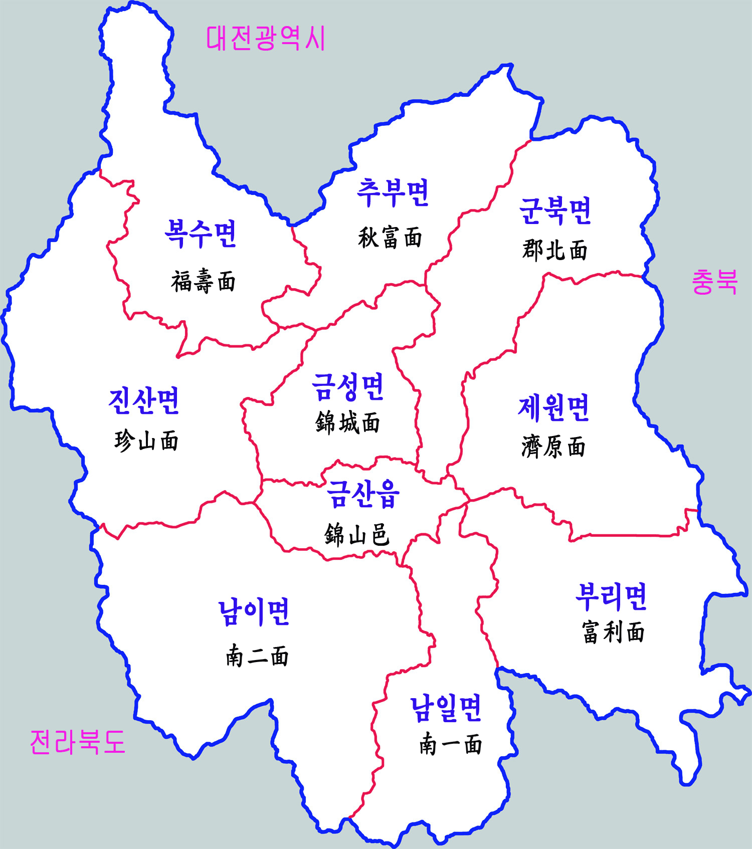 금산군 | 錦山郡 | 576.28 | 24,738 | 55,355 |