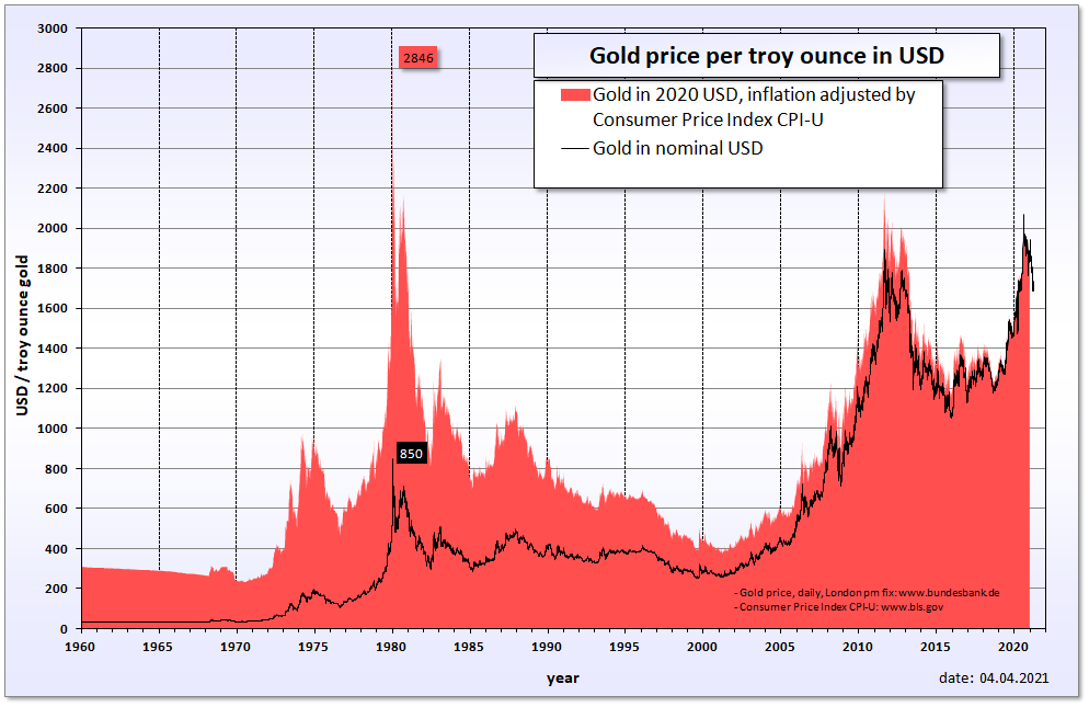 1968년 이후, 공개 시장에서의 금 가격은 크게 움직였다. 특히 2011년은 튀니지의 재스민 혁명을 시발점으로 한 중동 정세의 긴장, 일본의 동일본 대지진, 미국의 연방 채무 상한액 인상 문제를 배경으로 한 미국 국채 쇼크, 그리스 경제 위기를 발단으로 하는 유로존 소버린 부채 위기의 재연 등의 영향을 받아 금 가격이 급등했다. 그 후, 코로나19 범유행의 영향으로 금 가격이 상승하여, 2020년 8월 5일 런던 현물의 금 거래 가격에서 처음으로 2000USD/oz를 돌파했다.[77]