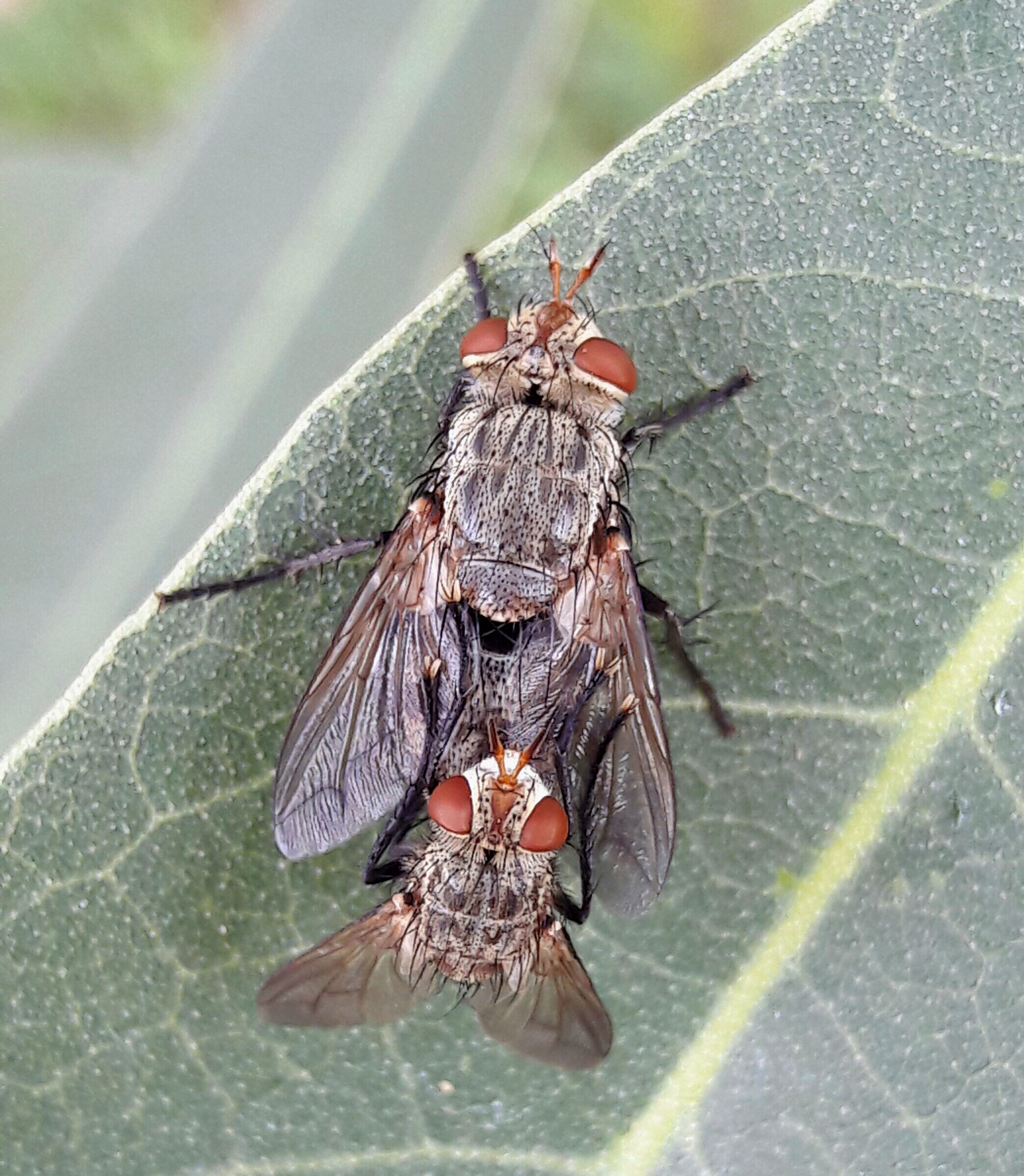 또 다른 산란 전략은 숙주가 먹는 식물에 작고 어두운 색의 알을 많이 낳는 것이다. ''Sturmia'', ''Zenillia'', ''Gonia''가 이러한 전략을 사용한다.