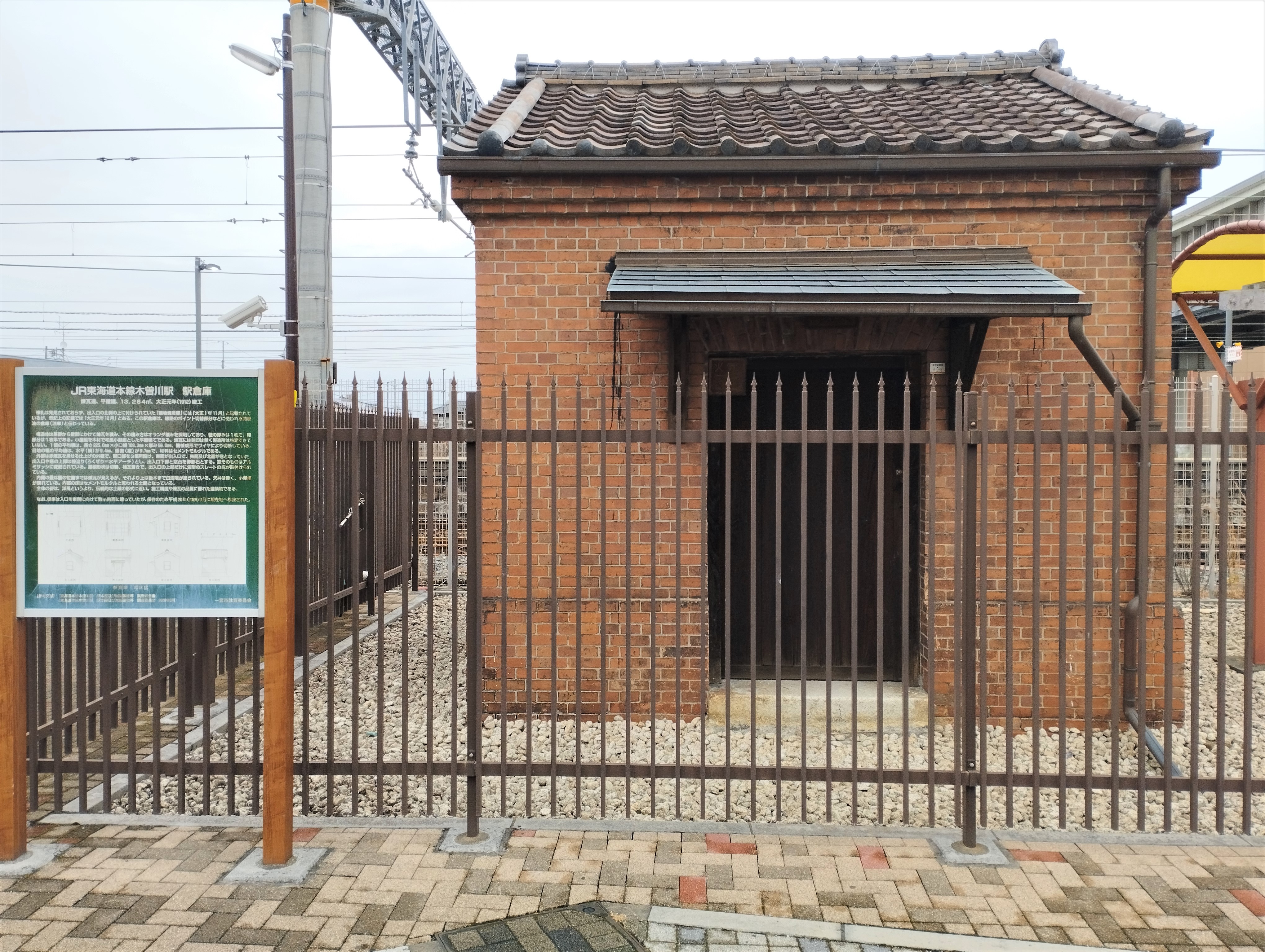 개찰구 안에는 구 역사에서 사용되던 대합용 벤치와 육교 기둥이 남아있고, 개찰구 밖 서쪽 출구 근처에는 다이쇼 시대에 포인트 전환용 기름을 보관하던 벽돌 창고가 근대 유산으로 보존되어 있다.