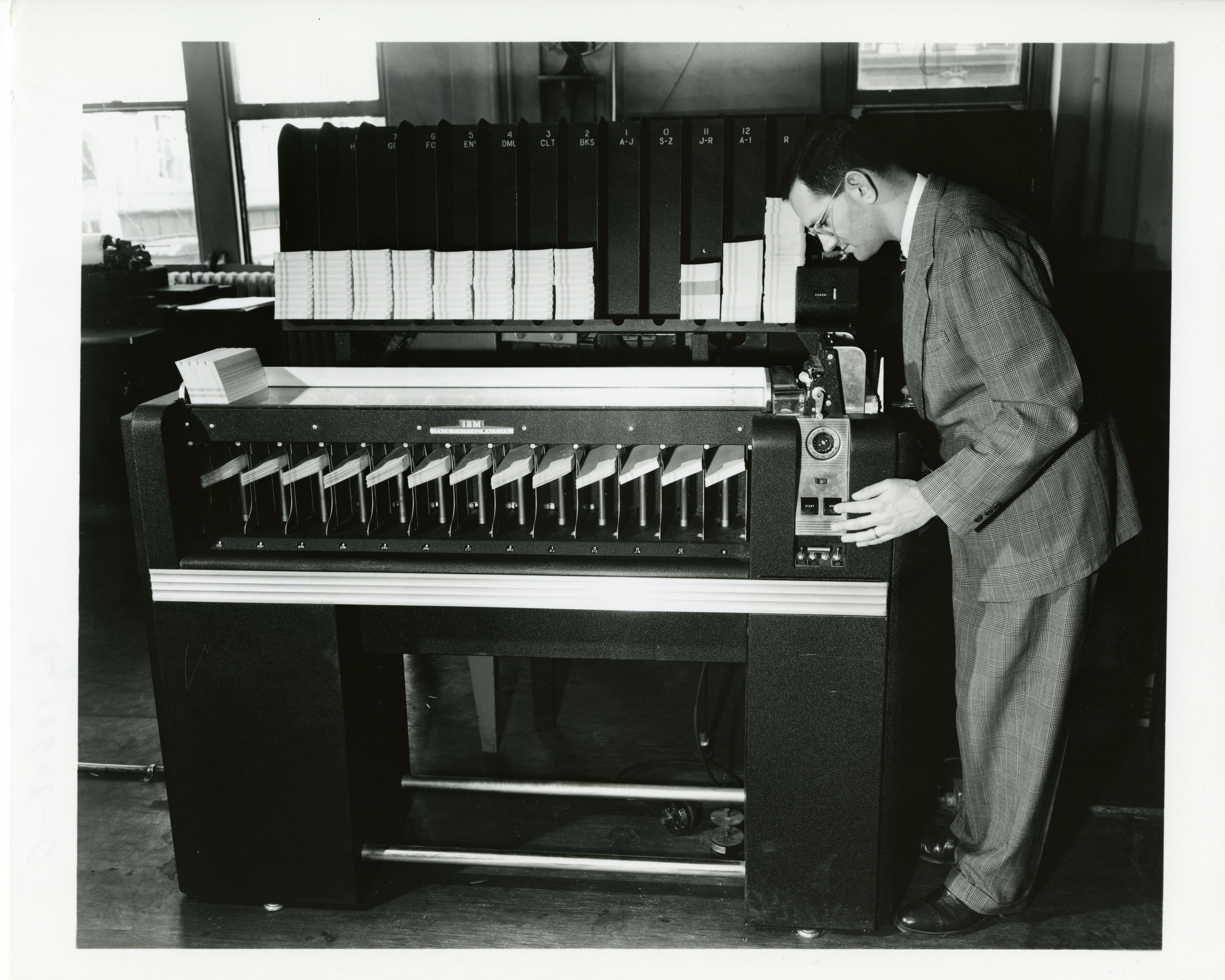 기수 정렬은 1887년 허먼 홀러리스가 작표기를 만들 때까지 거슬러 올라간다.[19] 1923년에 천공 카드를 분류하는 방법으로 널리 사용되었다.[20]