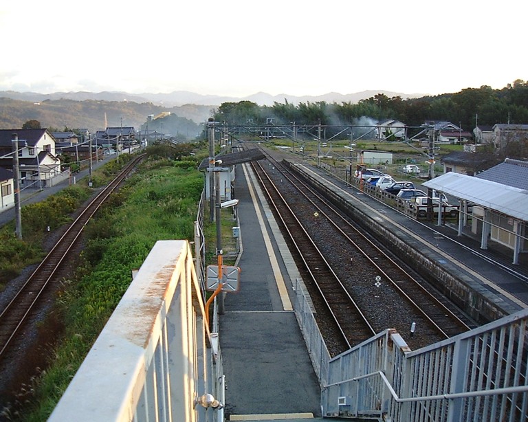 철거된 구 과선교 위에서 바라본 구 역 구내와 고조 방면. 왼쪽의 단선이 본선이다. (2002년 11월 6일)