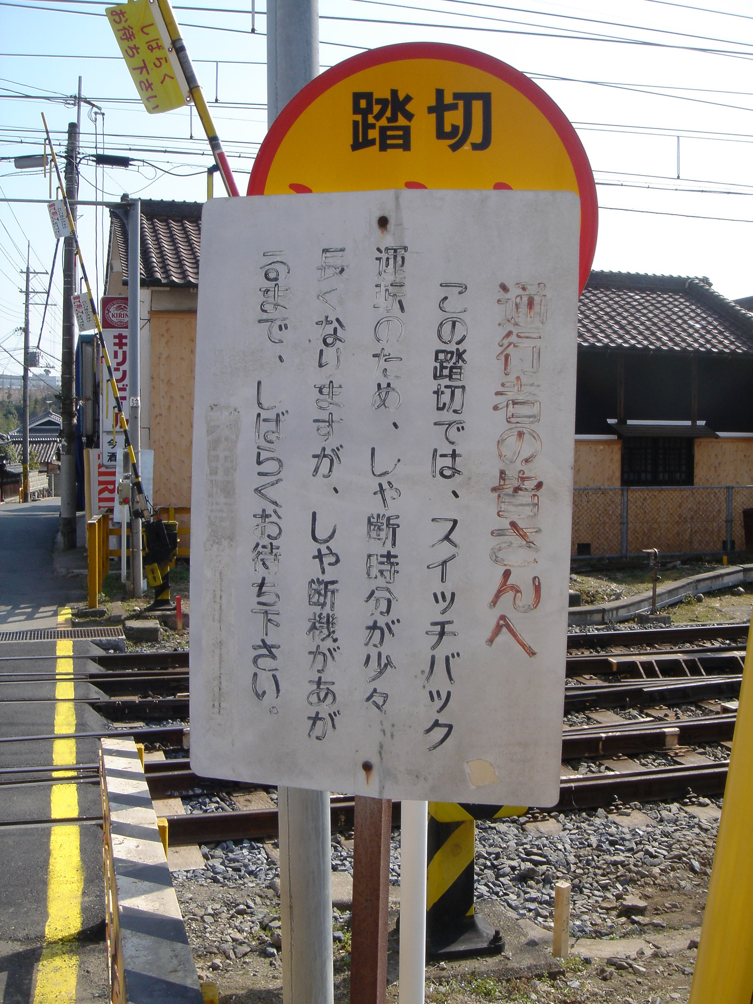이 역은 2007년 3월 18일까지 열차가 정차하기 위해 스위치백이 필요한 구조였으며, 이는 간사이 지방에서는 유일한 사례였다. 최고 경사가 20퍼밀 정도였지만, 개업 당시에는 증기 기관차가 열차를 견인했기 때문에 스위치백 설비가 필수적이었다. 이후 증기 기관차가 폐지되고 전철화가 이루어지면서 스위치백의 필요성은 줄어들었지만, 설비 자체는 계속 남아 있었다.