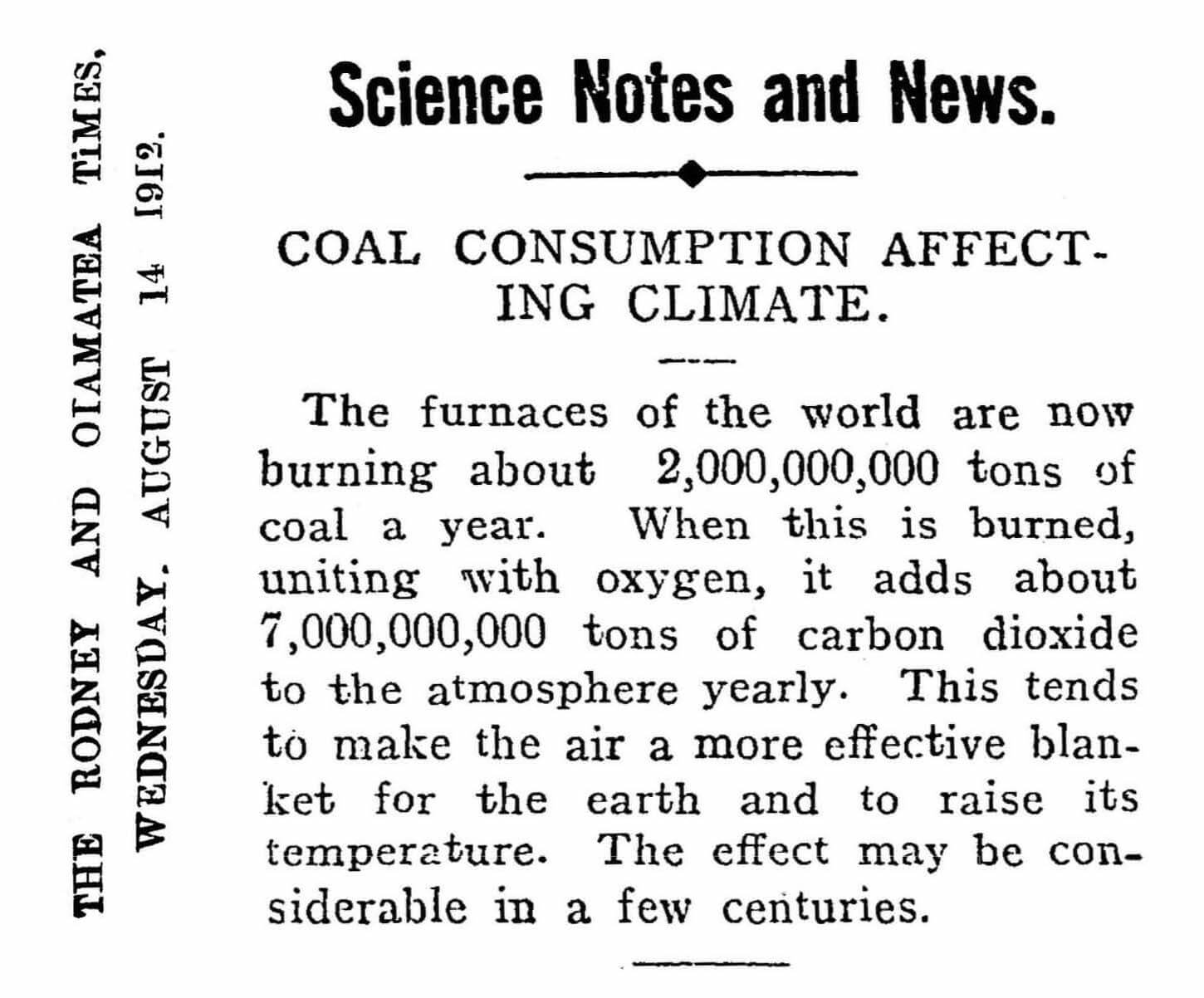 1950년대 길버트 플러스는 다양한 대기층과 적외선 대역을 포함한 상세한 컴퓨터 기후 모델을 만들었다. 이 모델에서는 이산화 탄소 농도가 증가하면 온난화 현상이 발생한다고 예측했다. 비슷한 시기 한스 쉬스는 이산화 탄소 농도가 증가하고 있다는 증거를 발견했으며, 로저 레빌은 해양이 증가한 이산화 탄소를 전부 흡수하지 못한다는 수치를 보여주었다. 이후 두 과학자는 찰스 데이비드 킬링과 함께 지속적으로 대기 중 증가하는 이산화 탄소 농도를 그린 그래프인 "킬링 곡선"을 그리는 일을 도왔다.[873] 이후 과학자들은 대중에게 경고하기 시작했고,[875] 그 위험성은 1988년 제임스 핸슨이 미국 의회에서 증언하면서 강조되었다.[876] 1988년에는 세계 각국 정부에 공식적인 조언을 제공하고 학제간 연구에 박차를 가하기 위해 유엔의 전문 기관인 기후 변화에 관한 정부간 협의체(IPCC)가 설립되었다.[877] IPCC 보고서 내에서 과학자들은 동료평가된 과학 학술지에 실린 여러 과학적 토의를 평가한다.[878]